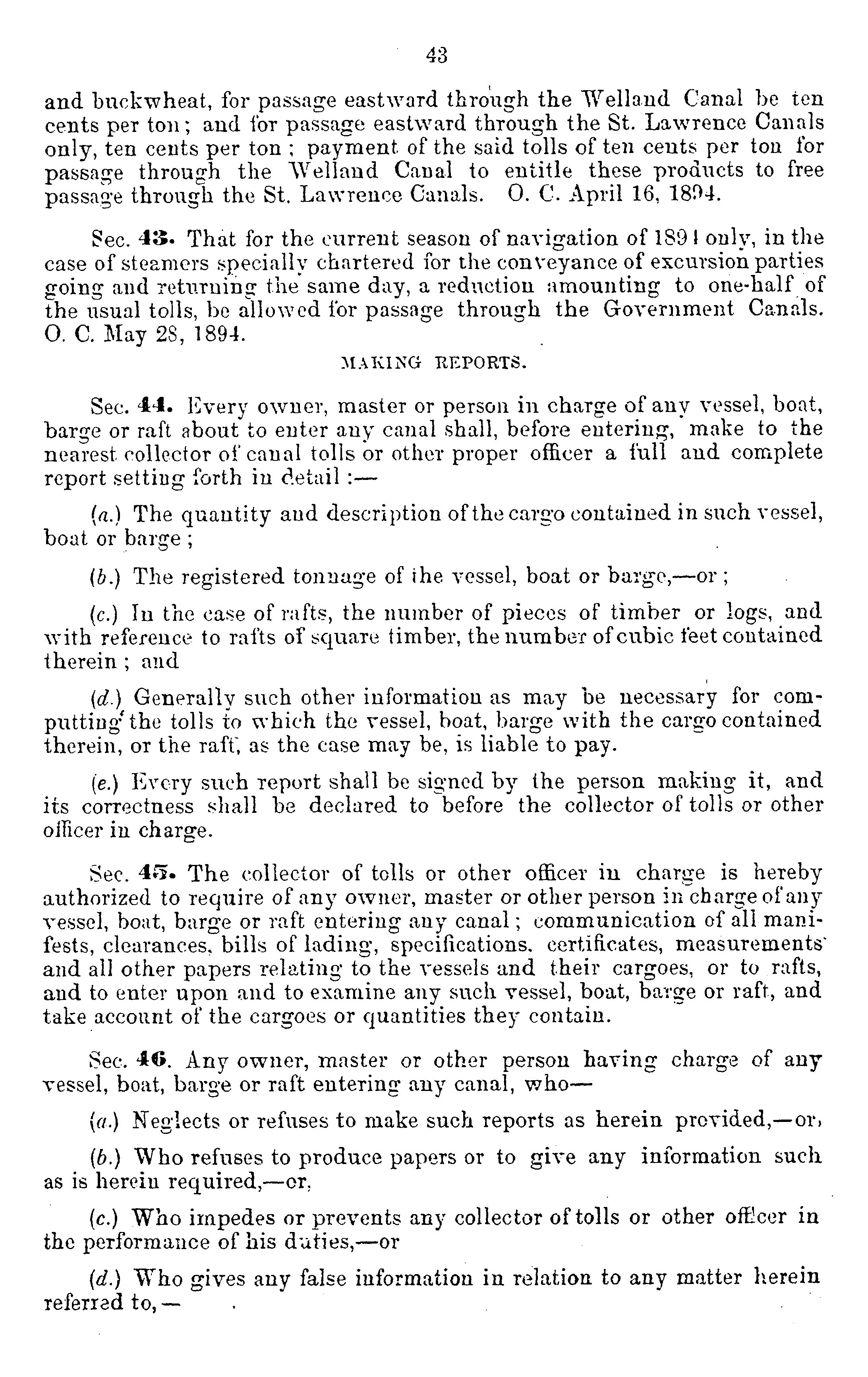 Regulations and tariff for the Dominion canals, 1895 - Published