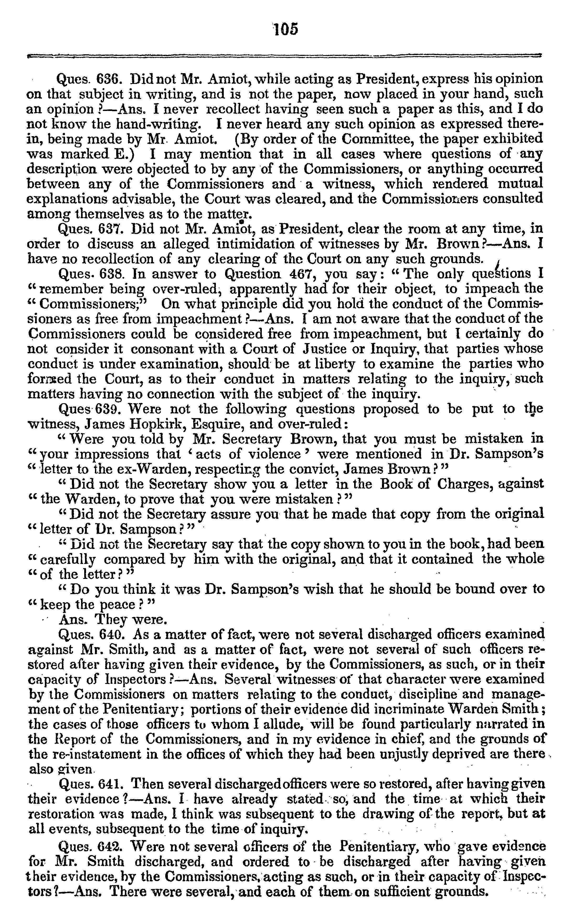 Proceedings of a committee of seven, James Moir Ferres, Chairman, recording its investigation into charges preferred by John A. Macdonald on Feb. 26, 1856, against Brown. The latter was accused of having made false records and influenced witnesses while he was acting as a member and secretary of the commission appointed to inquire into the condition of the provincial penitentiary in 1848.