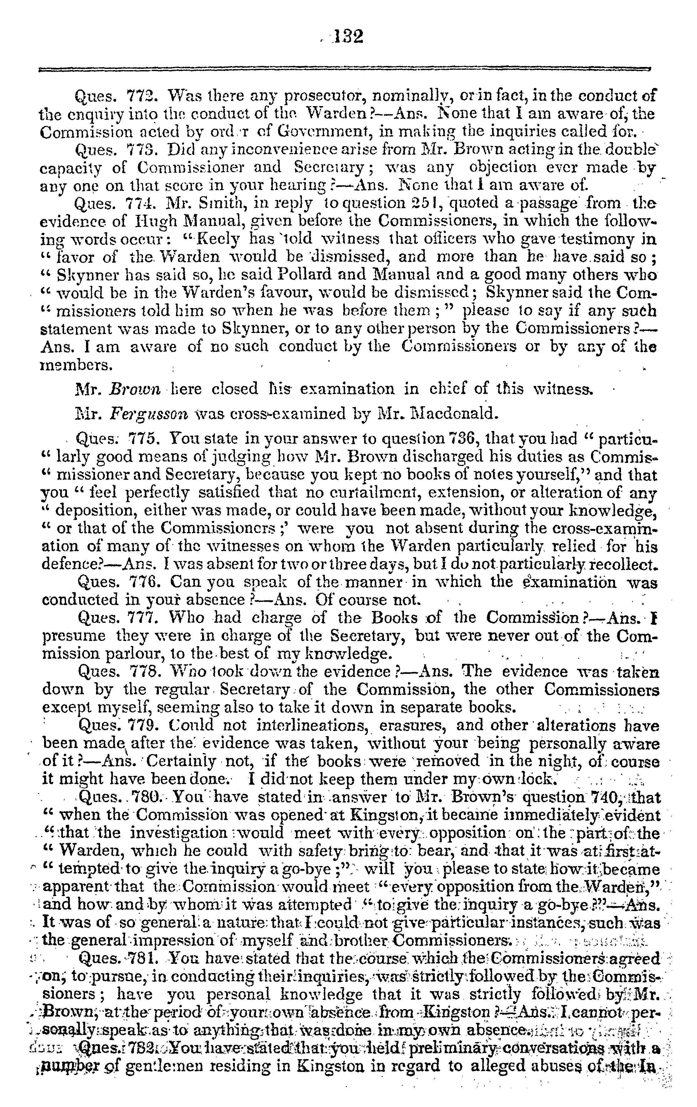 Proceedings of a committee of seven, James Moir Ferres, Chairman, recording its investigation into charges preferred by John A. Macdonald on Feb. 26, 1856, against Brown. The latter was accused of having made false records and influenced witnesses while he was acting as a member and secretary of the commission appointed to inquire into the condition of the provincial penitentiary in 1848.