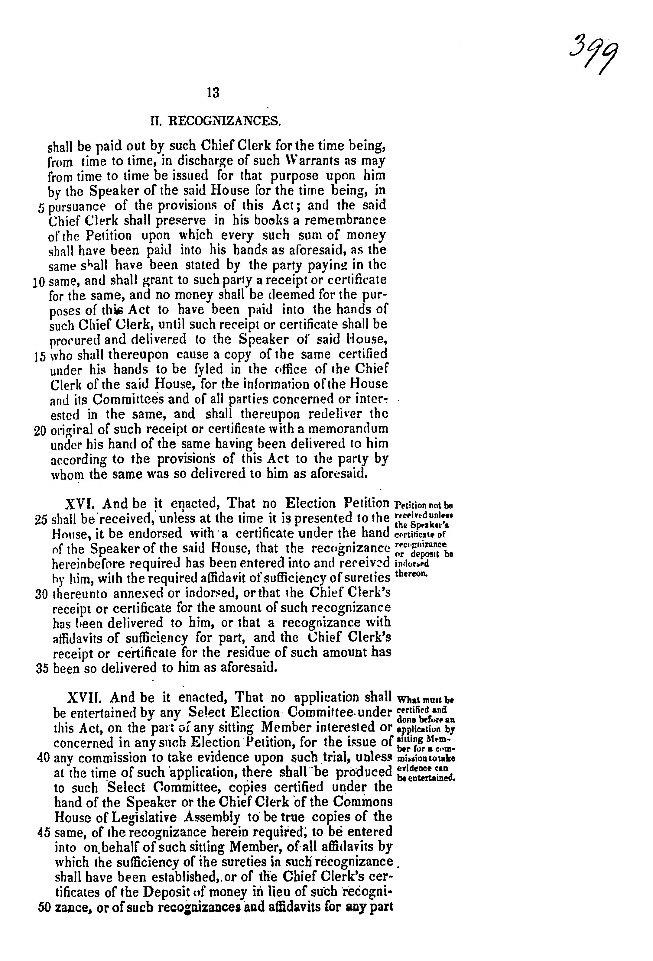Captian title: Act to repeal the several acts of the parliaments of Lower and Upper Canada now in force for the trial of controverted parliamentary elections in the two sections of the province respectively, and to provide by one general act for the trial of all parliamentary election petitions.