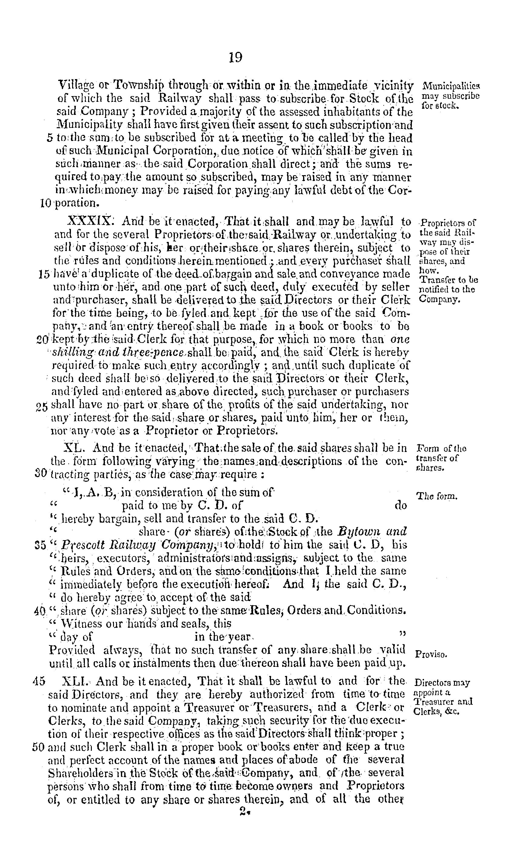 Act to incorporate the Bytown and Prescott Railway Company