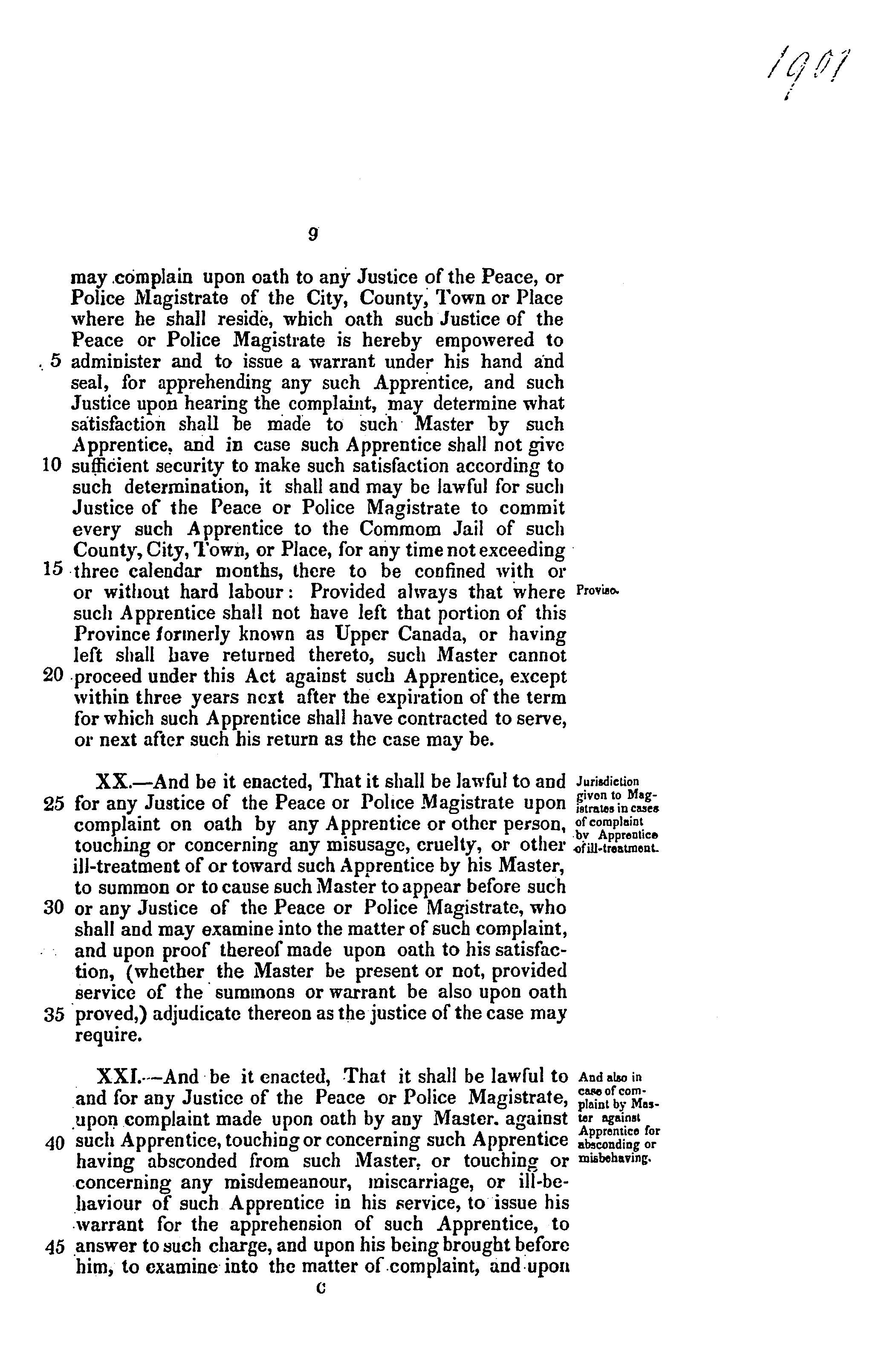 Act relating to masters and apprentices in Upper Canada, and to define their respective rights and duties