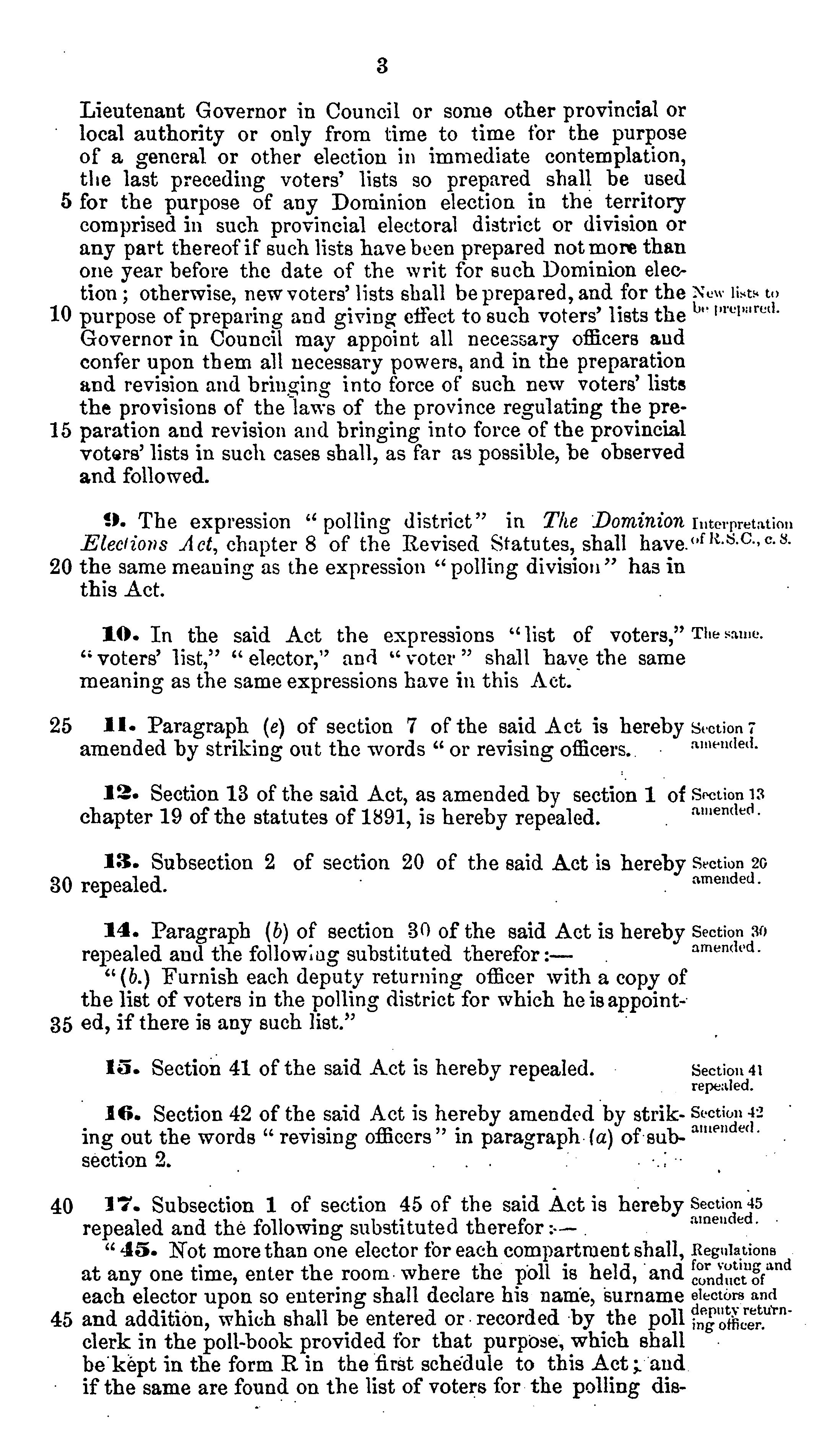 Act to repeal the electoral franchise act, and to further amend the Dominion elections act