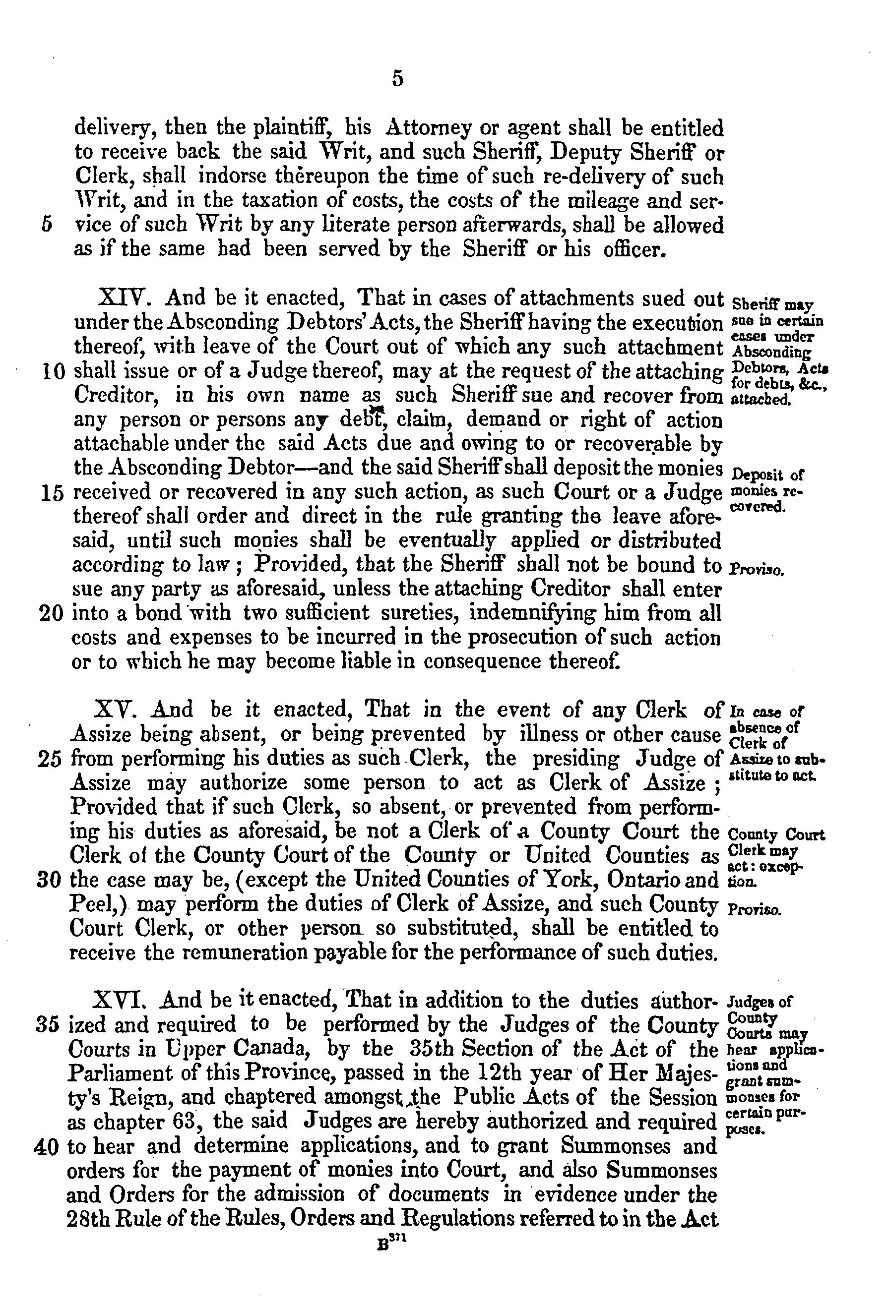 Act to provide for the more equal distribution of business in the superior courts of common law in Upper Canada, and for other purposes therein mentioned