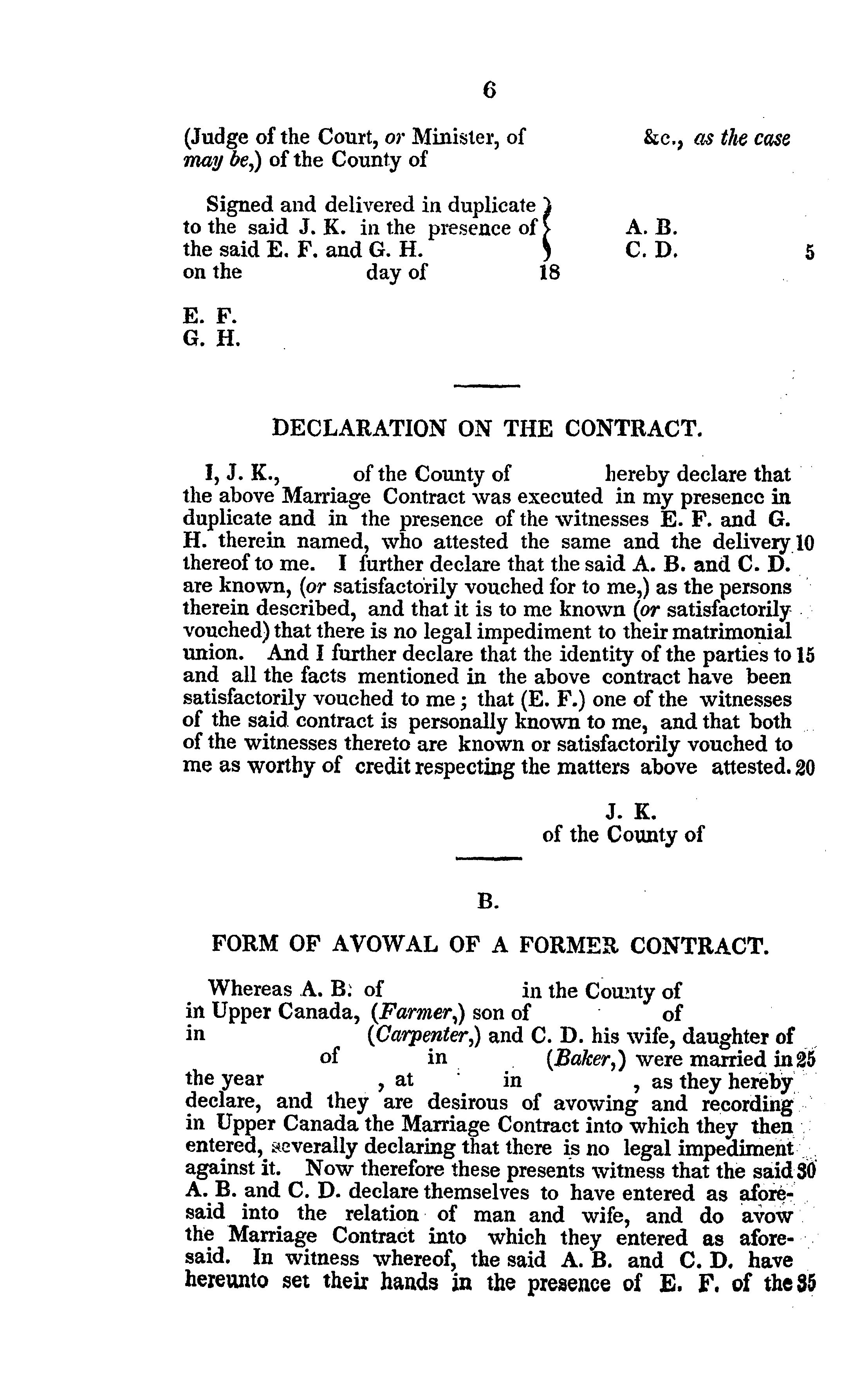 Act to amend the law of Upper Canada with respect to the solemnization and registration of matrimony