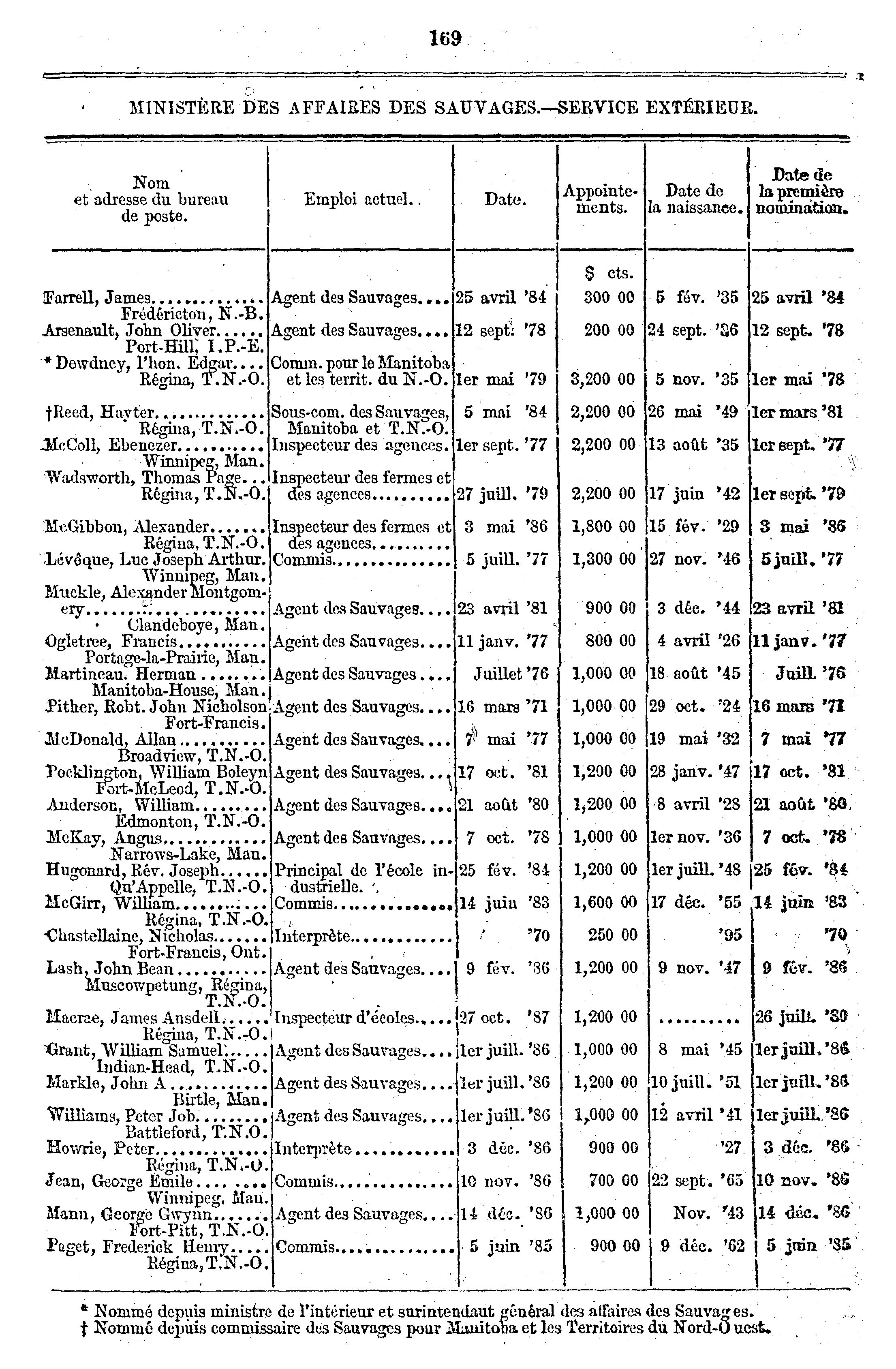 - Liste du service civil du Canada, 1888 : contenant les noms de toutes les personnes employées dans les différents départements du service civil, ainsi que de ceux des employés des deux chambres du Parlement, le 1er juillet 1888, indiquant les dates de leurs nominations et promotions, leur âge, leur emploi dans le service civil, et leurs appointements