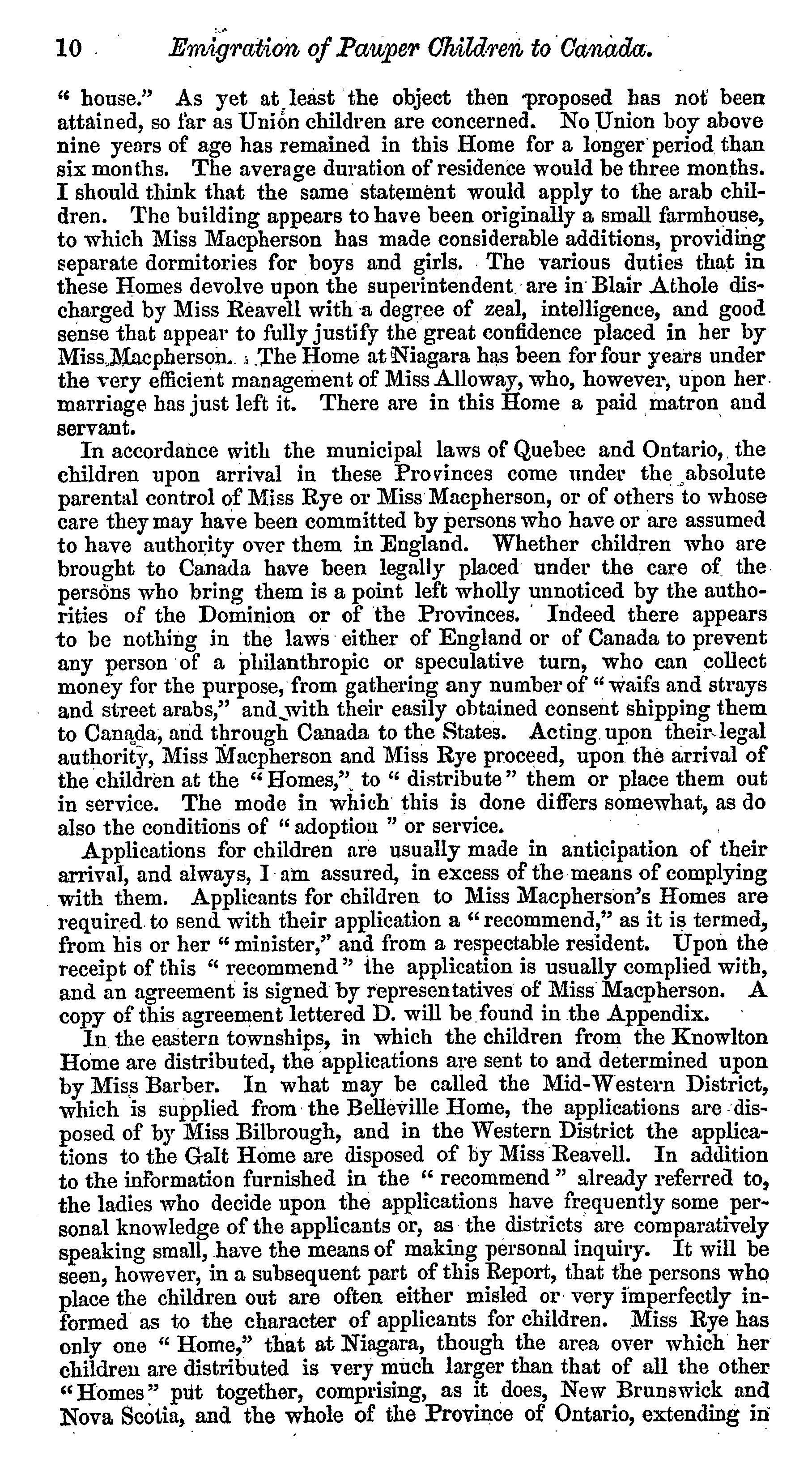 Pauper children (Canada) : copy of a report to the Right Honourable the president of the Local Government Board, by Andrew Doyle, Esquire, local government inspector, as to the emigration of pauper children to Canada