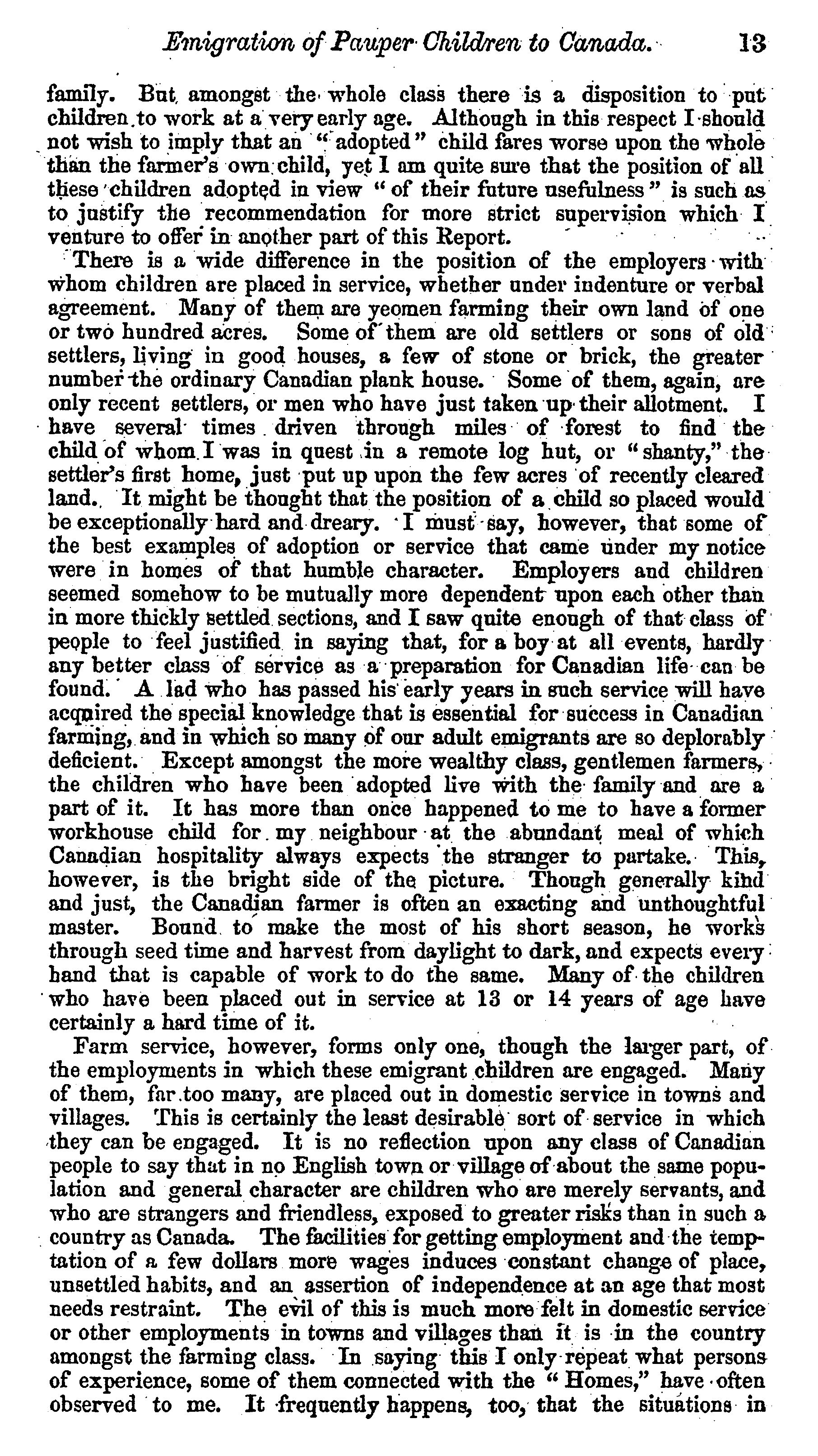 Pauper children (Canada) : copy of a report to the Right Honourable the president of the Local Government Board, by Andrew Doyle, Esquire, local government inspector, as to the emigration of pauper children to Canada