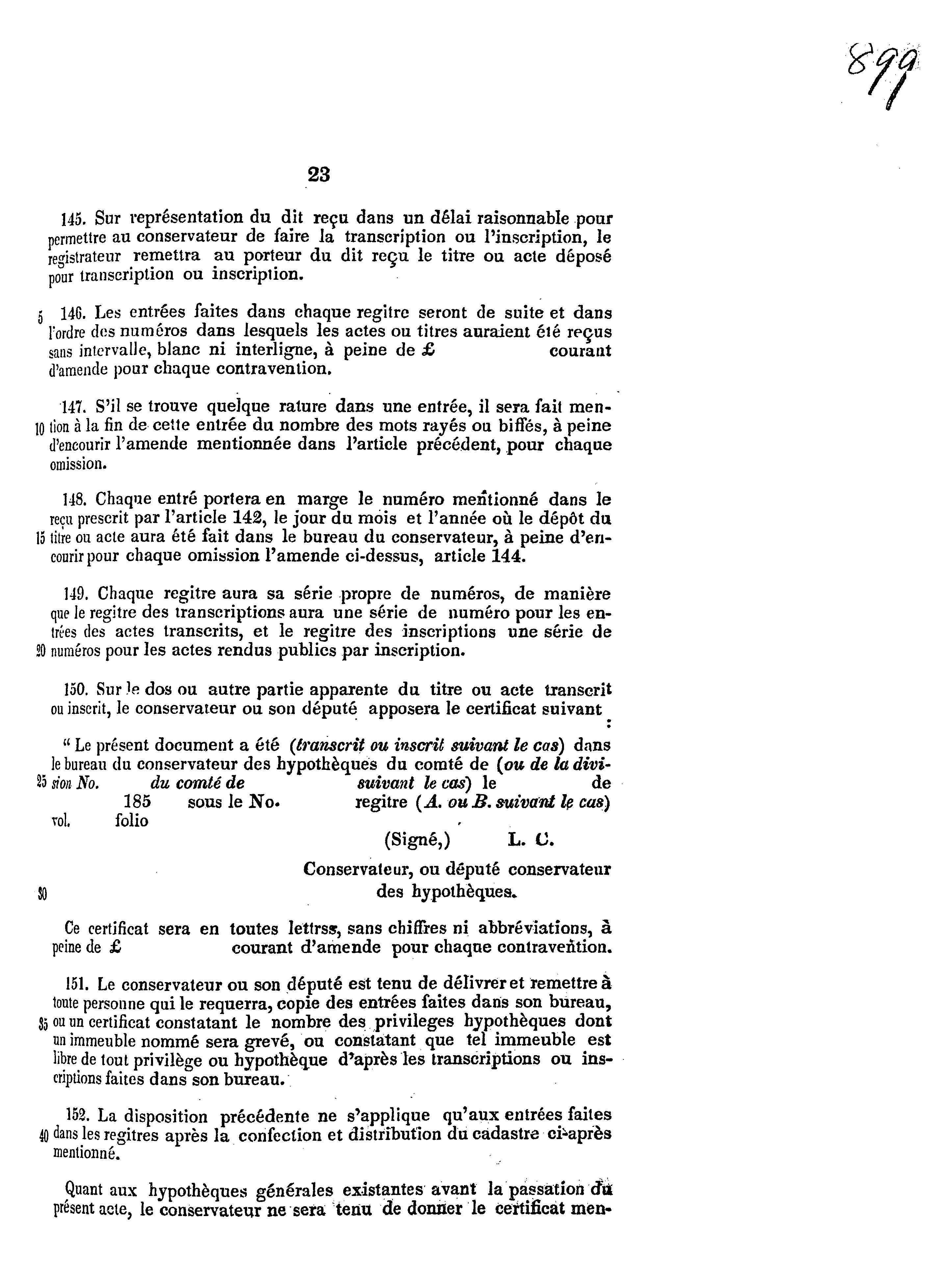 Acte pour pourvoir plus efficacement à la publicité des hypothèques et droits réels dans le Bas-Canada