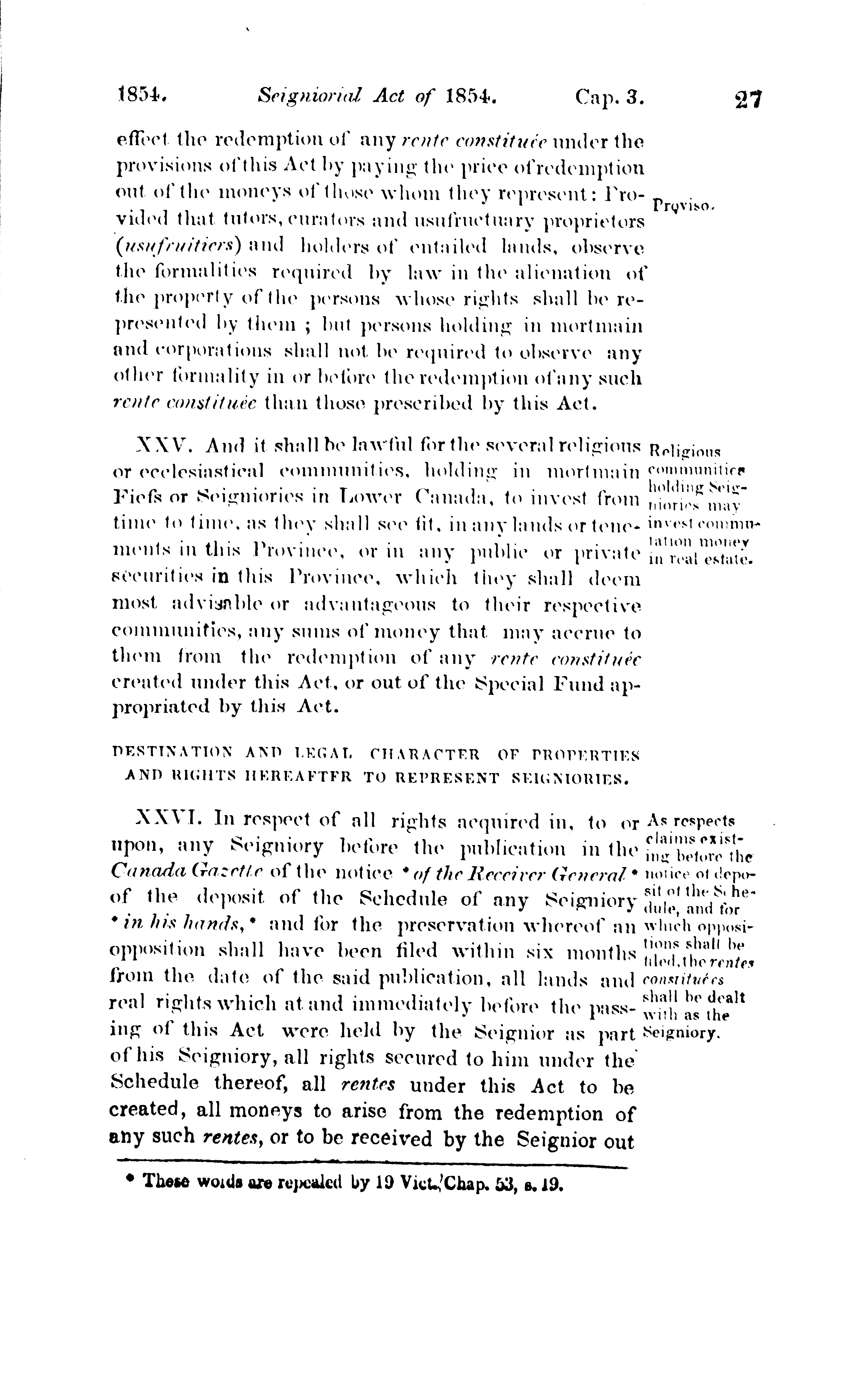 The seigniorial acts : viz, the Seigniorial act of 1854, 16 Vict. cap. III, the Seigniorial amendment act of 1855, 18 Vict. cap. CIII, the Seigniorial amendment act of 1856, 19 Vict. cap. LIII.