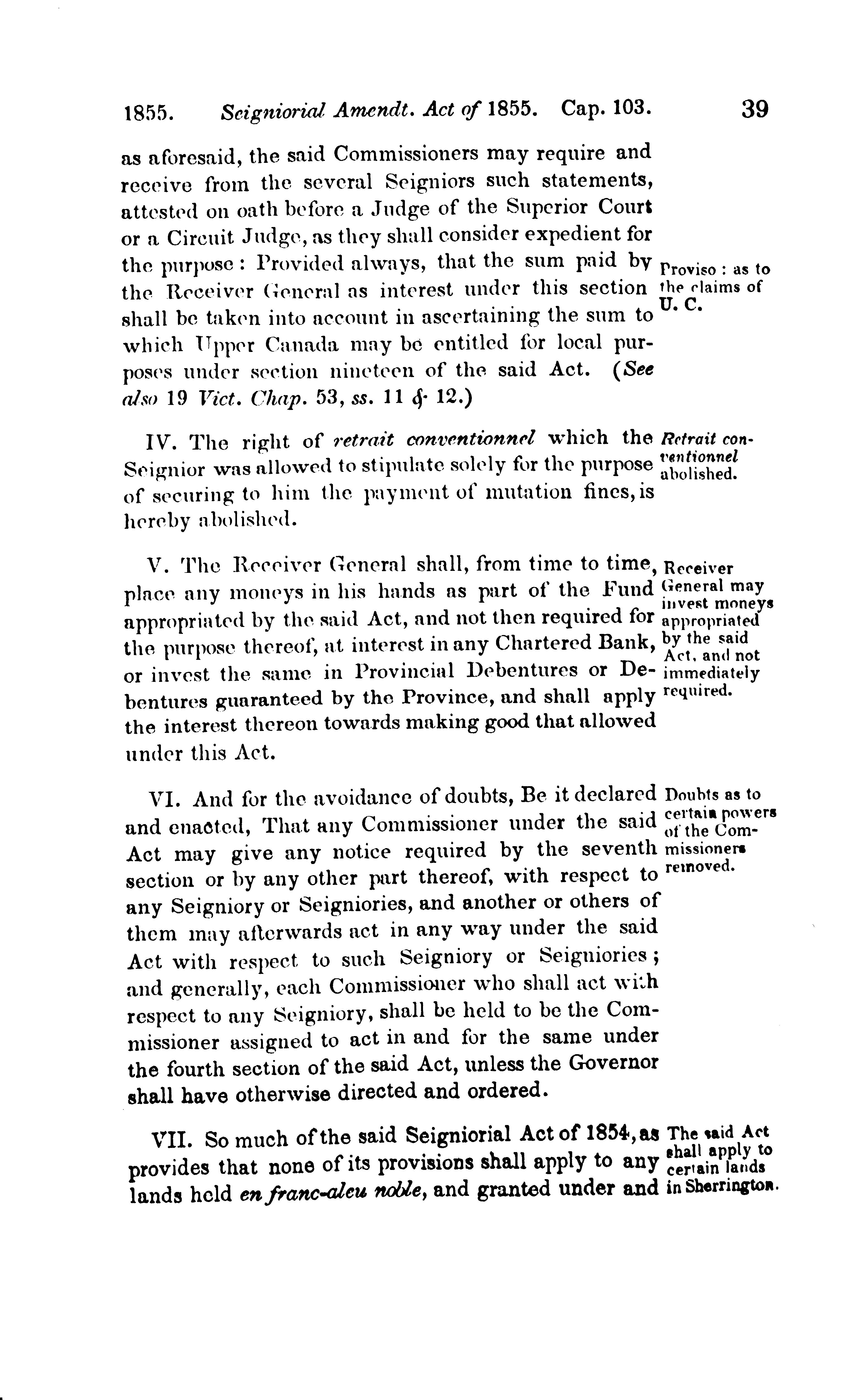 The seigniorial acts : viz, the Seigniorial act of 1854, 16 Vict. cap. III, the Seigniorial amendment act of 1855, 18 Vict. cap. CIII, the Seigniorial amendment act of 1856, 19 Vict. cap. LIII. - Adresse bibliographique