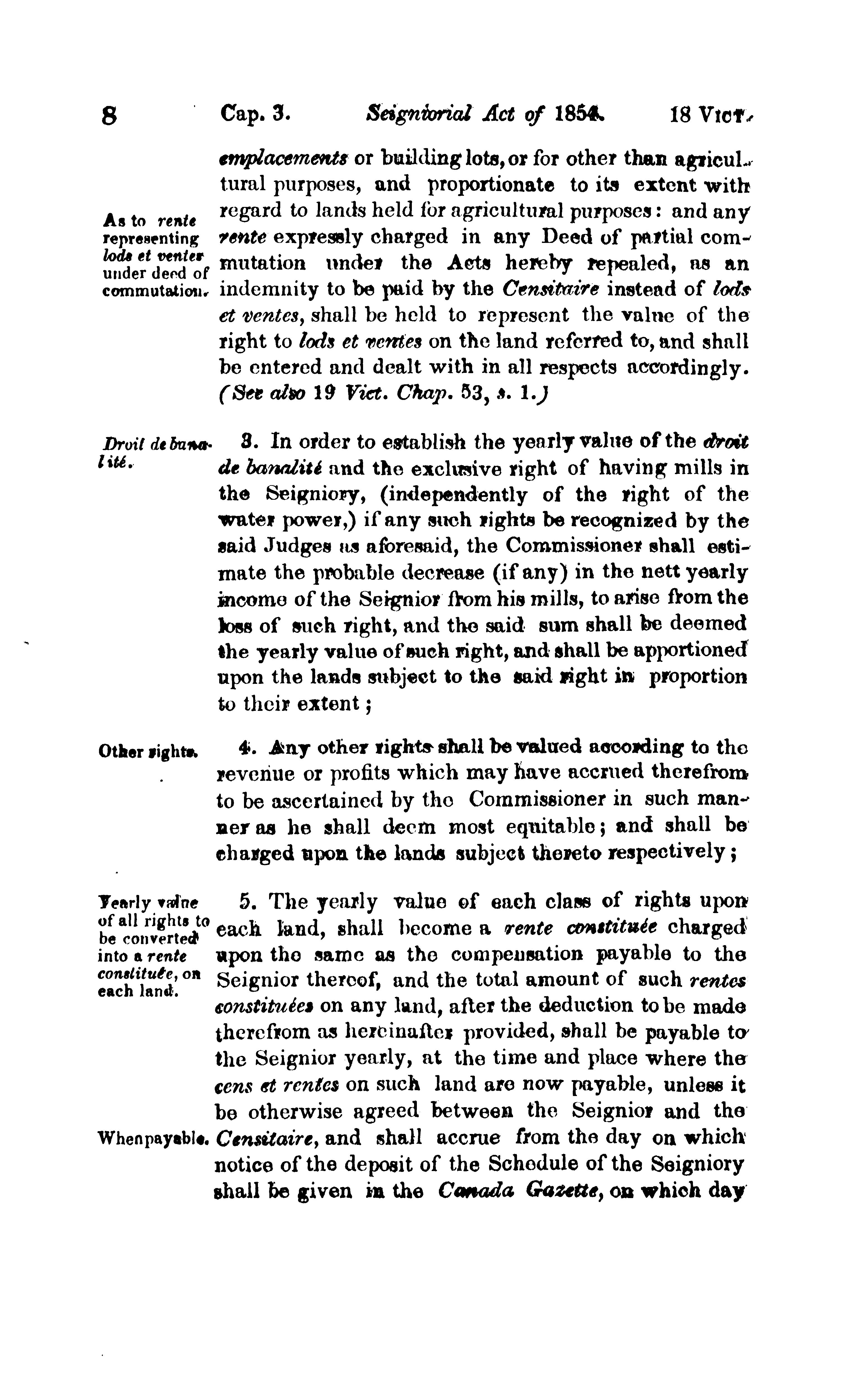 The seigniorial acts : viz, the Seigniorial act of 1854, 16 Vict. cap. III, the Seigniorial amendment act of 1855, 18 Vict. cap. CIII, the Seigniorial amendment act of 1856, 19 Vict. cap. LIII.