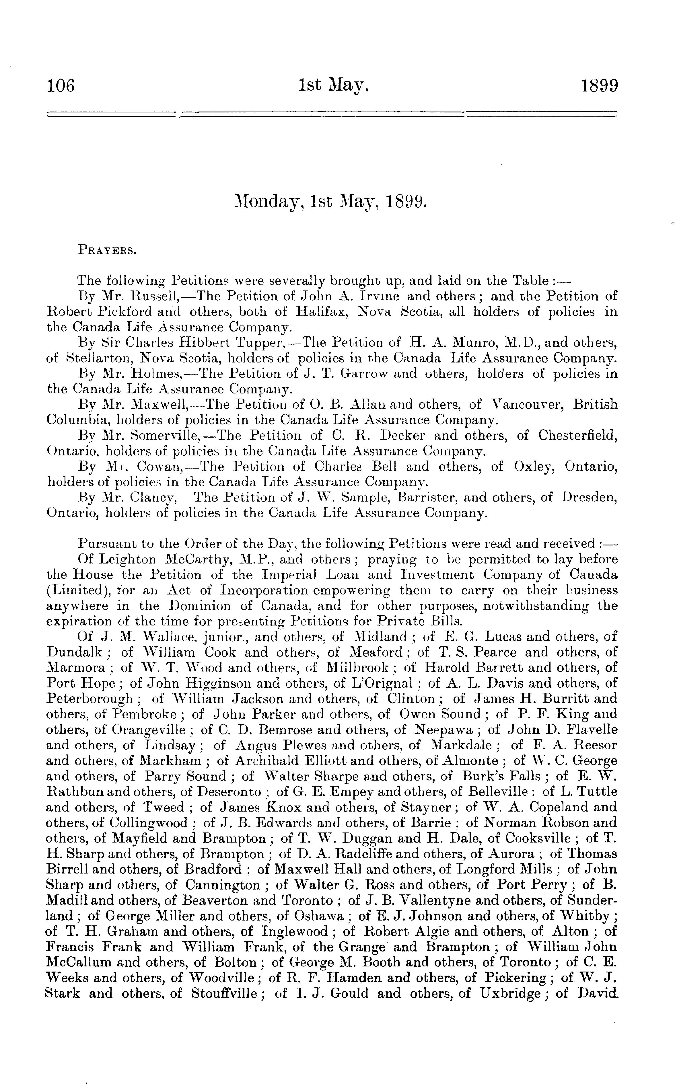 Journals of the House of Commons of the Dominion of Canada from the 16th of March to the 11th of August, 1899 ... being the 4th session of the 8th Parliament of Canada, session 1899 : 1899