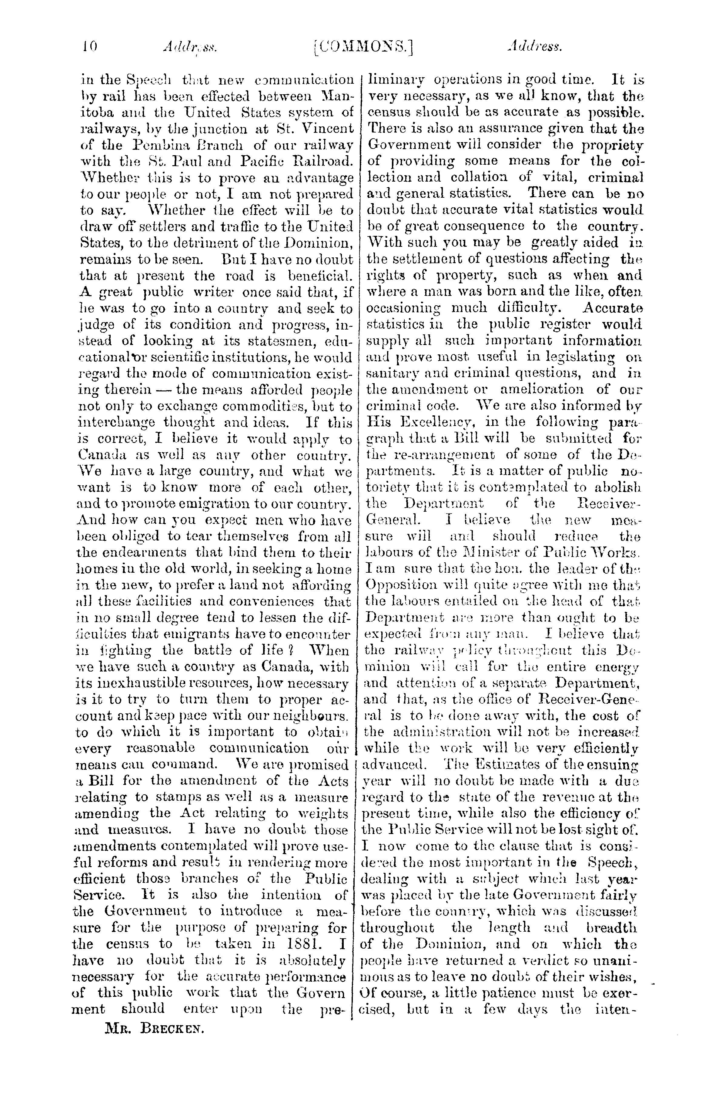 Debates of the House of Commons of the Dominion of Canada : first session, fourth Parliament ... comprising the period from the thirteenth day of February, 1879 to the seventh day of April, 1879 : first volume of the session : 1879 (pt. 1)