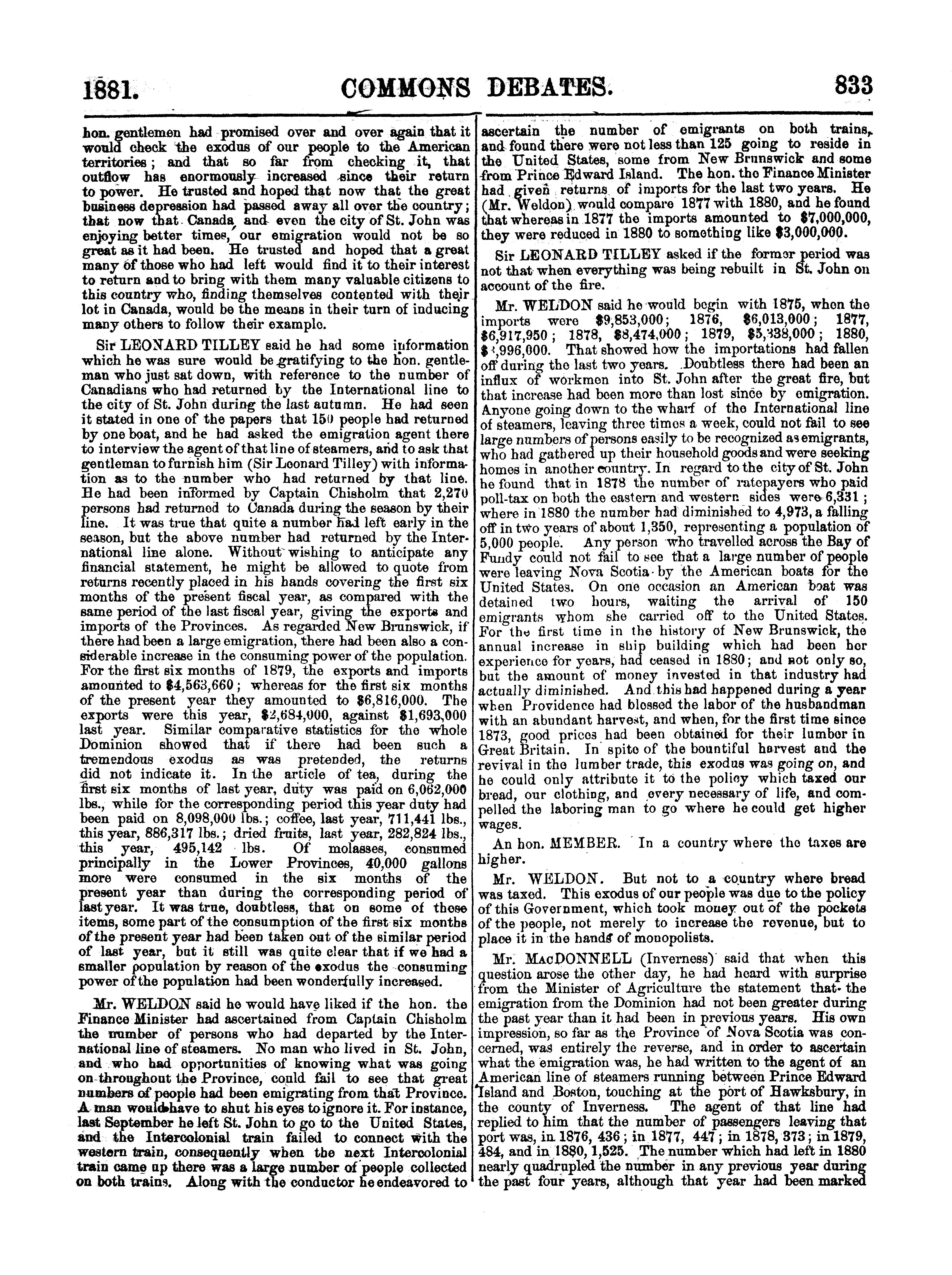 Debates of the House of Commons of the Dominion of Canada : third session, fourth Parliament ... comprising the period from the second day of February 1881, to the twenty-first day of March, 1881 : second volume of the session : 1881 (pt. 2)