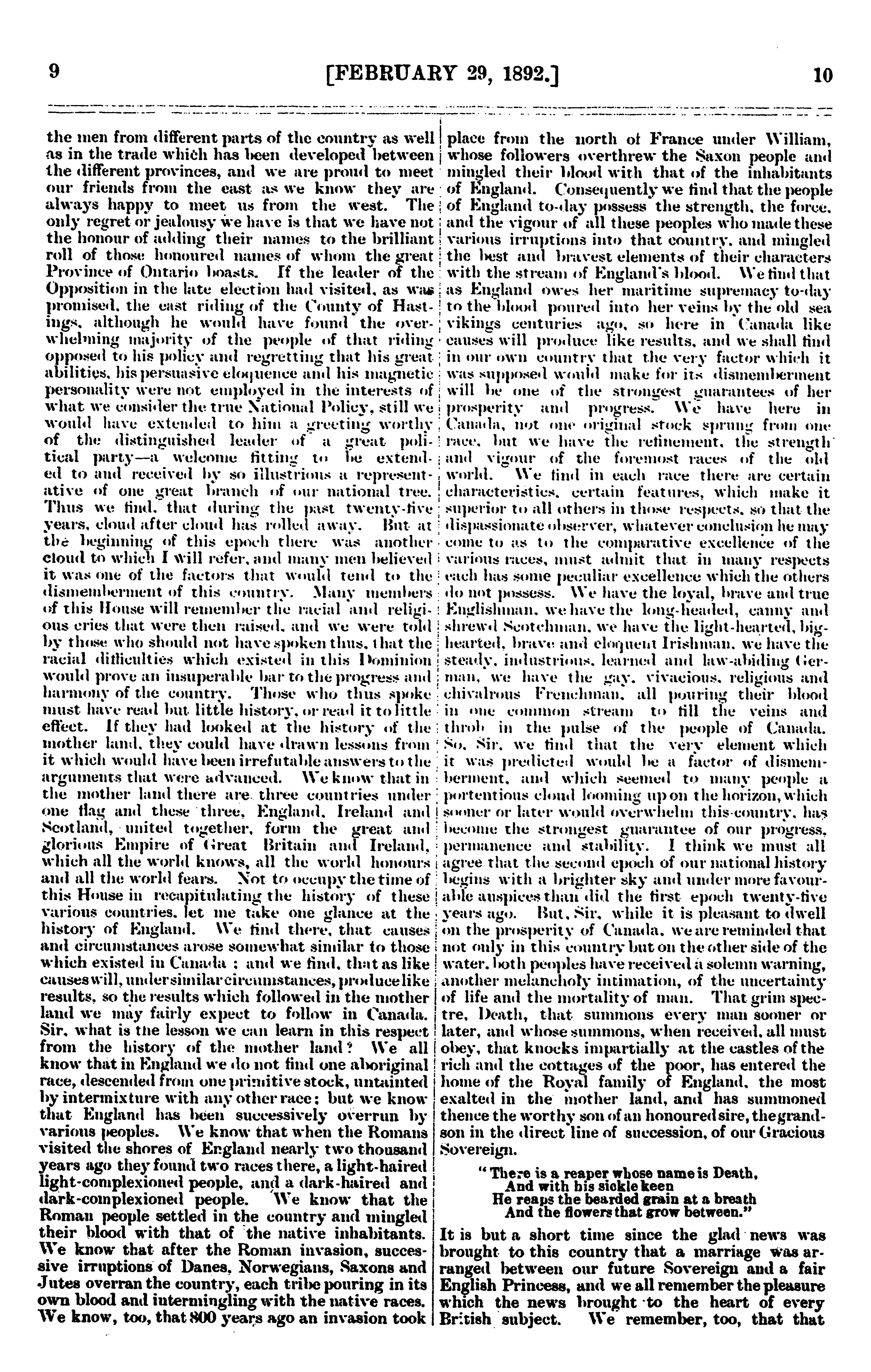Official report of the debates of the House of Commons of the Dominion of Canada : second session, seventh Parliament ... comprising the period from the twenty-fifth day of February to the ninth day of May, inclusive : 1892 (pt. 1)