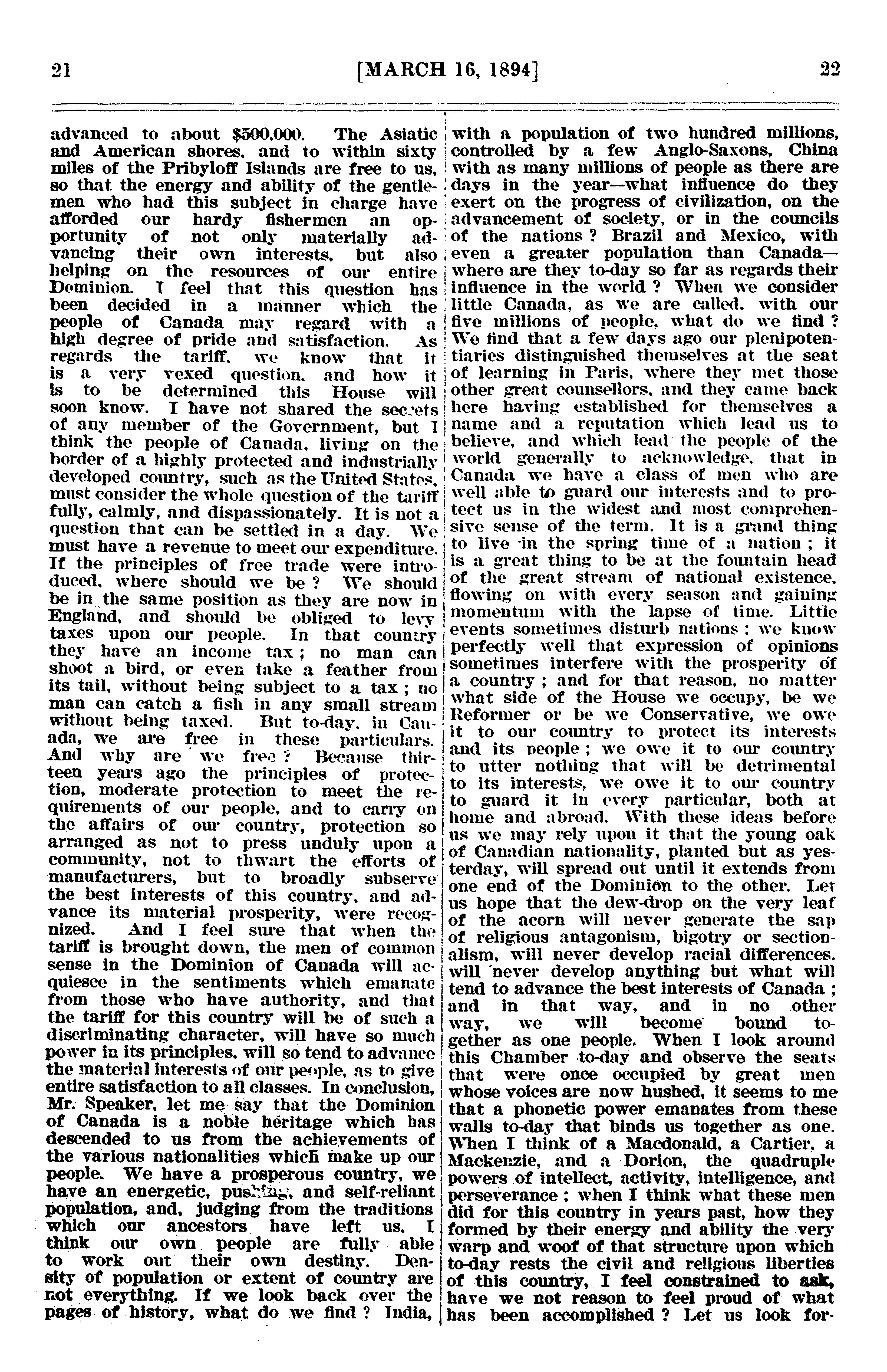 Official report of the debates of the House of Commons of the Dominion of Canada : Official report of the debates of the House of Commons of the Dominion of Canada : fourth session, seventh Parliament ... comprising the period from the fifteenth day of March to the twenty-third day of May, inclusive : 1894 (pt. 1)