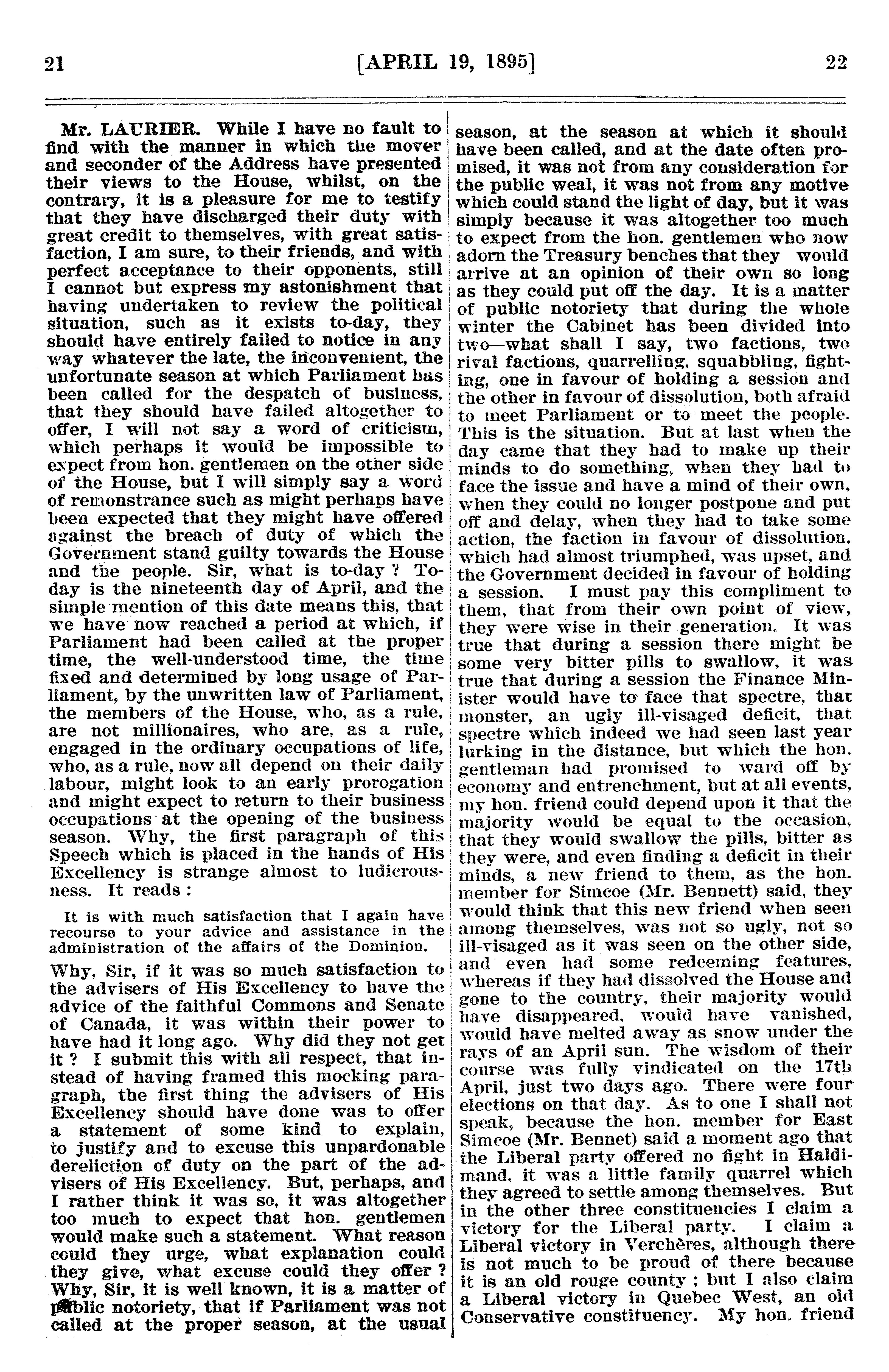 Official report of the debates of the House of Commons of the Dominion of Canada : fifth session, seventh Parliament ... comprising the period from the eighteenth day of April to the tenth day of June, inclusive : 1895 (pt. 1)