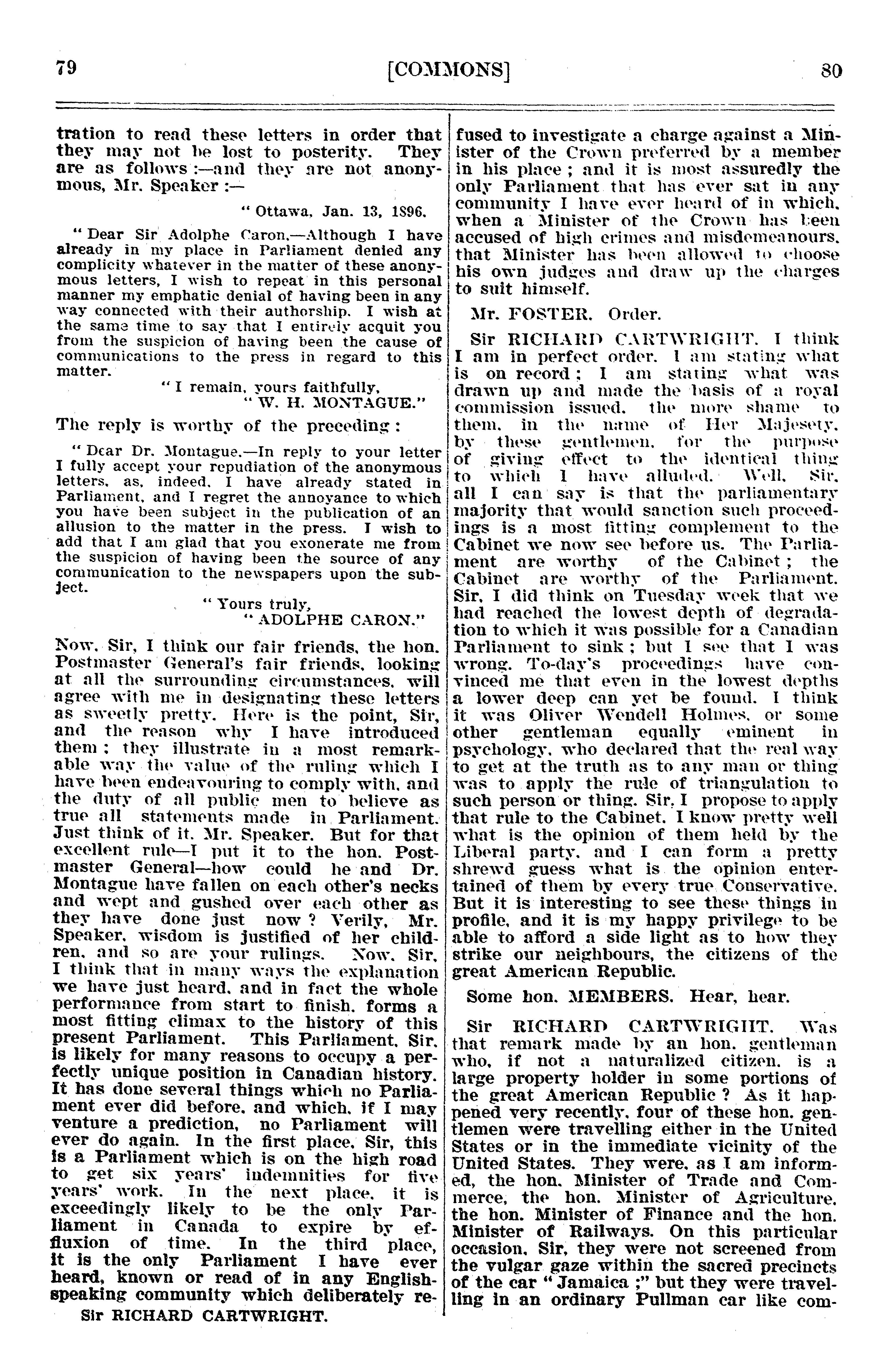 Official report of the debates of the House of Commons of the Dominion of Canada : sixth session, seventh Parliament ... comprising the period from the second day of January to the thirteenth day of March, inclusive : 1896 (pt. 1)