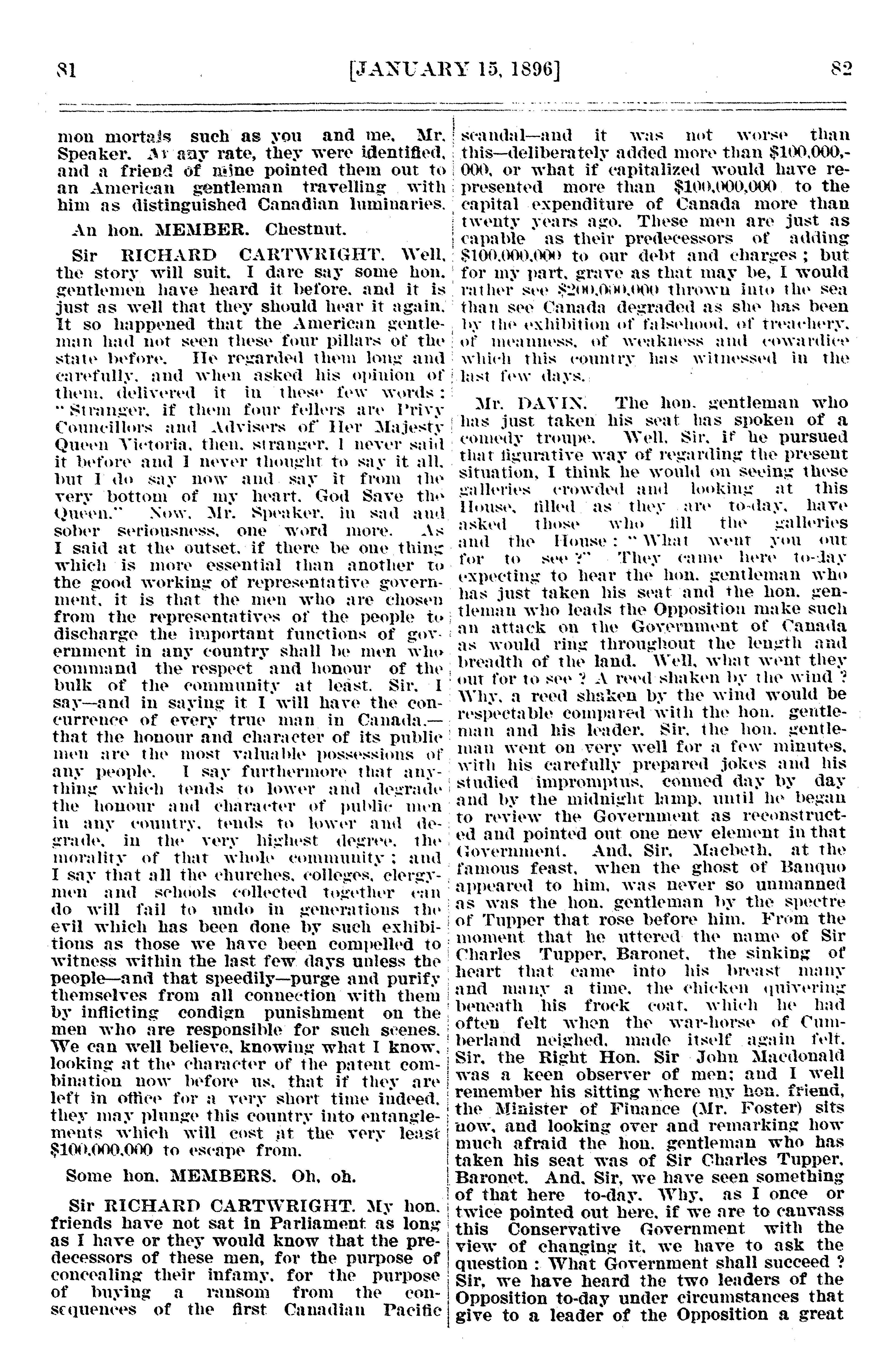 Official report of the debates of the House of Commons of the Dominion of Canada : Official report of the debates of the House of Commons of the Dominion of Canada : sixth session, seventh Parliament ... comprising the period from the second day of January to the thirteenth day of March, inclusive : 1896 (pt. 1)