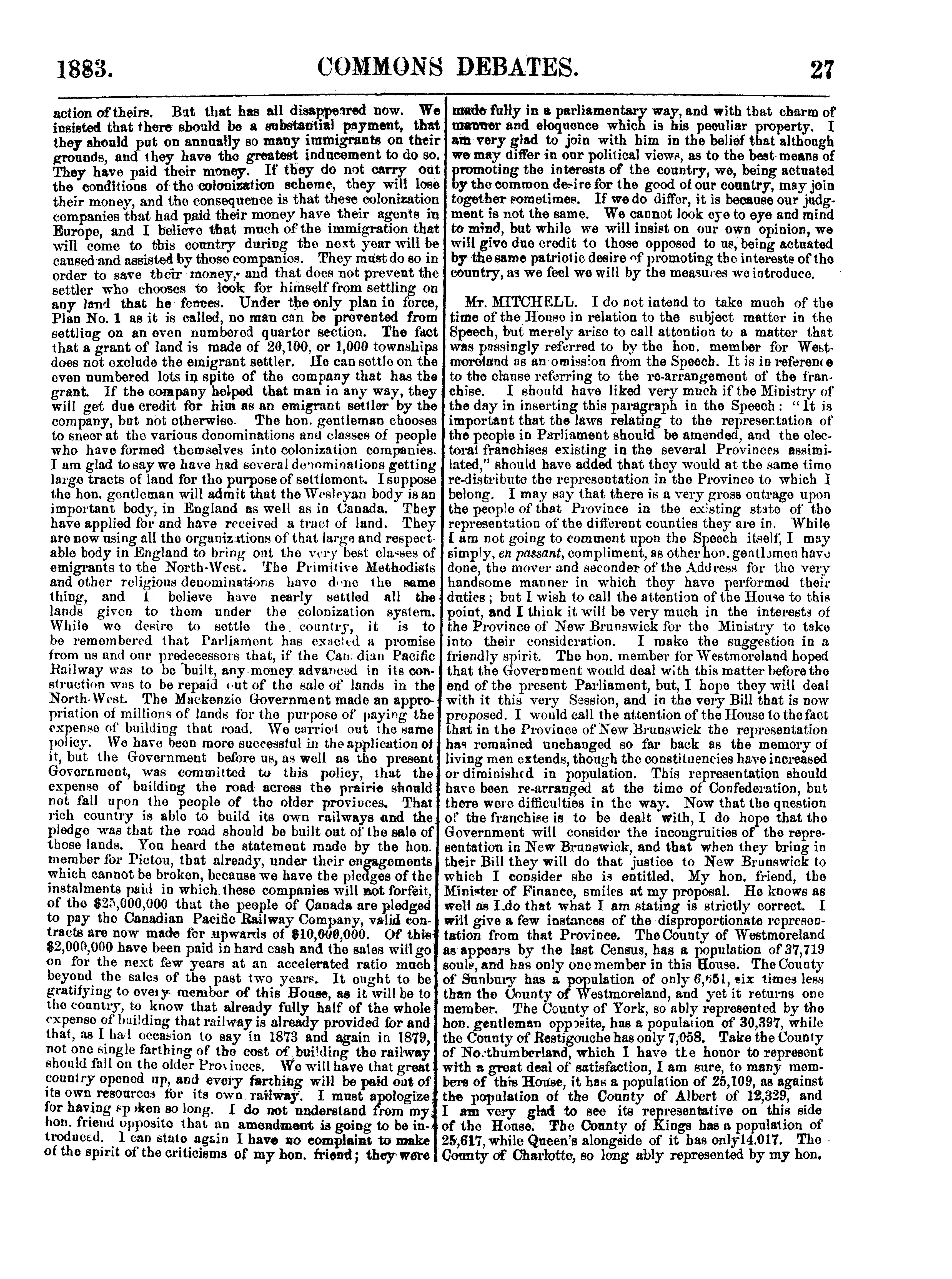 Official report of the debates of the House of Commons of the Dominion of Canada : Official reports of the debates of the House of Commons of the Dominion of Canada : first session, fifth Parliament ... comprising the period from the eighth day of February to the nineteenth day of April, 1883 : 1883 (pt. 1)