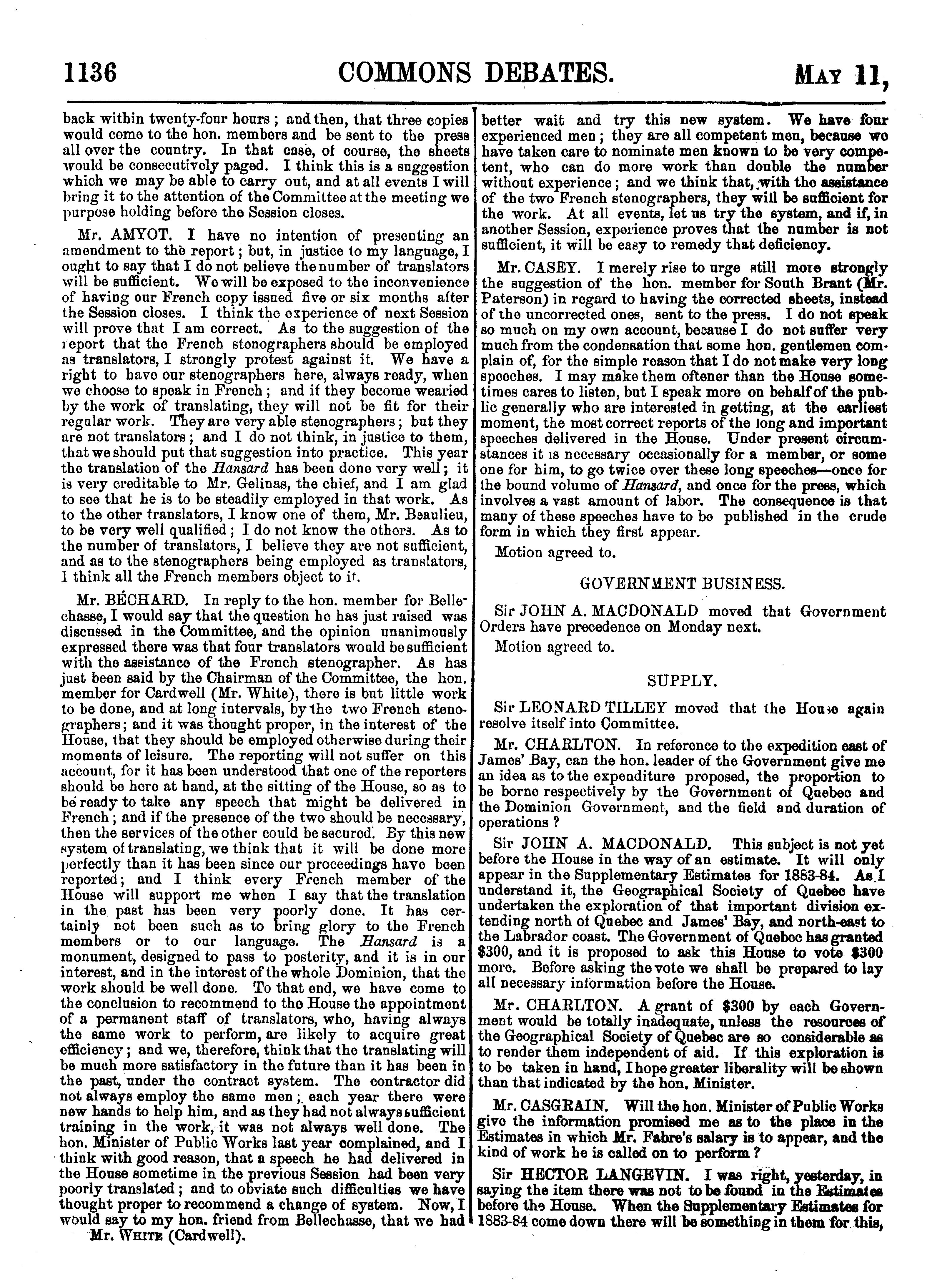 Official report of the debates of the House of Commons of the Dominion of Canada : Official reports of the debates of the House of Commons of the Dominion of Canada : first session, fifth Parliament ... comprising the period from the twentieth day of April to the twenty-fifth day of May, 1883 : 1883 (pt. 2)