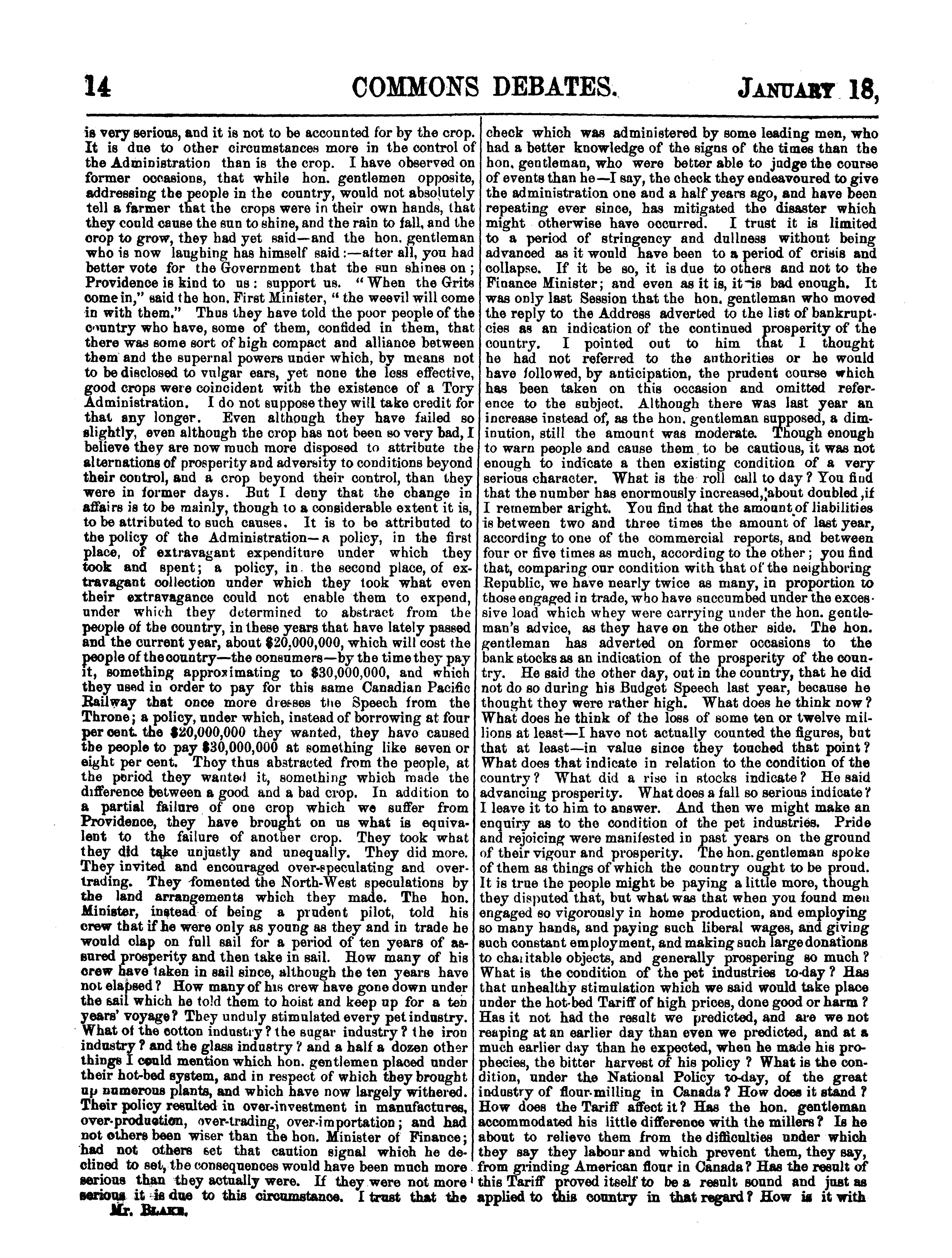 Official report of the debates of the House of Commons of the Dominion of Canada : second session, fifth Parliament ... comprising the period from the seventeenth day of January to the eleventh day of March, 1884 : 1884 (pt. 1)