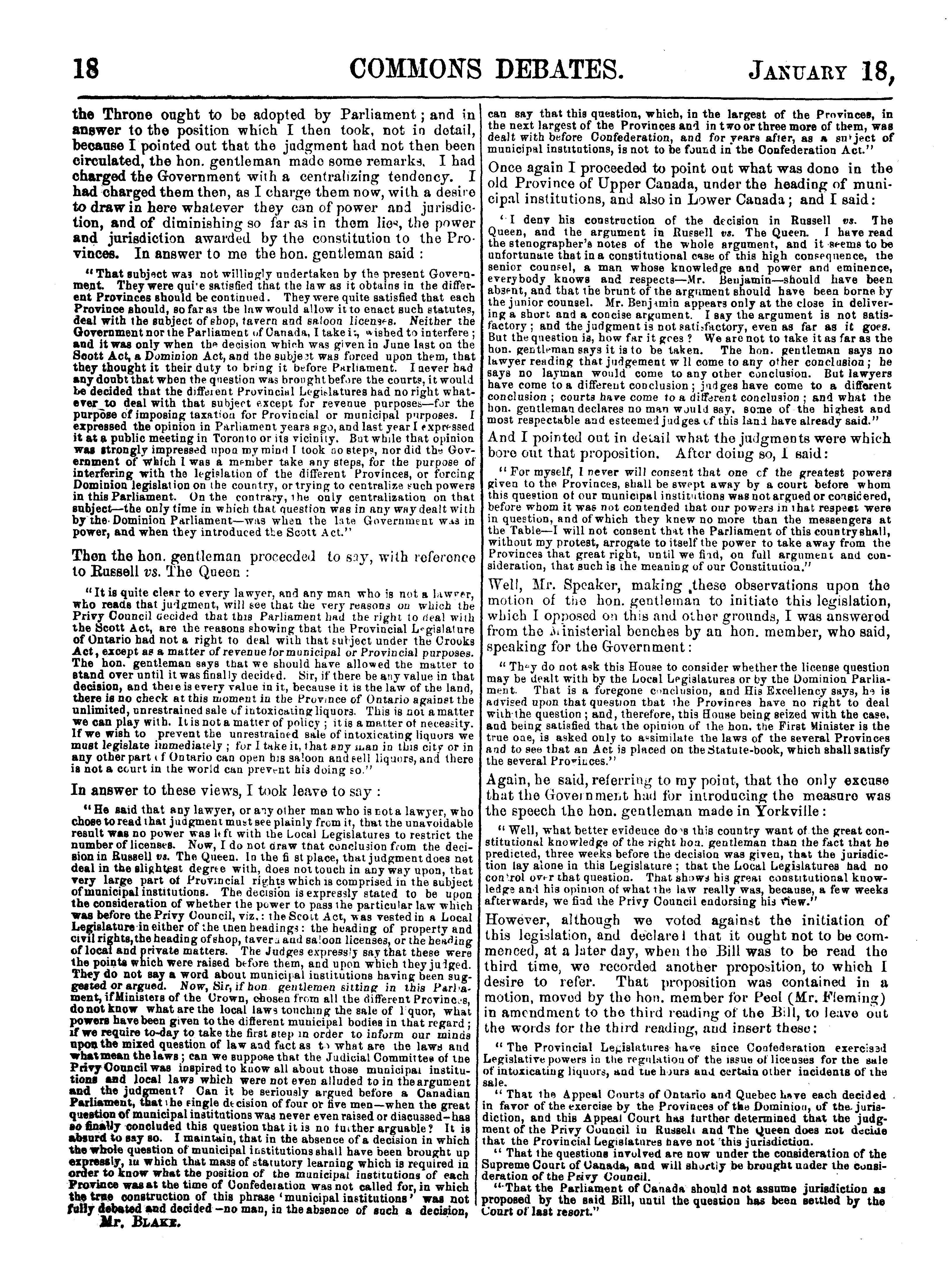 Official report of the debates of the House of Commons of the Dominion of Canada : second session, fifth Parliament ... comprising the period from the seventeenth day of January to the eleventh day of March, 1884 : 1884 (pt. 1)