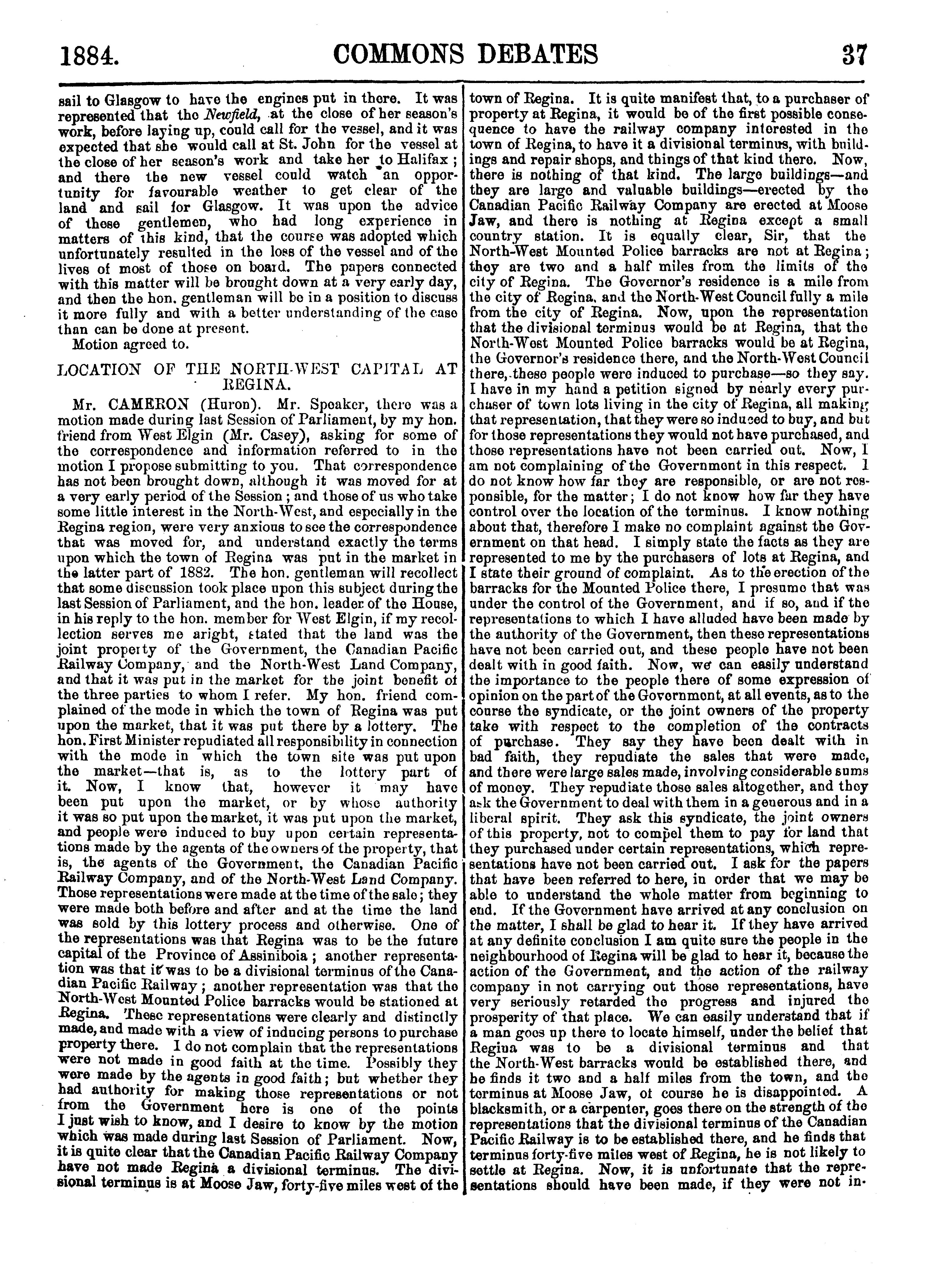Official report of the debates of the House of Commons of the Dominion of Canada : second session, fifth Parliament ... comprising the period from the seventeenth day of January to the eleventh day of March, 1884 : 1884 (pt. 1)