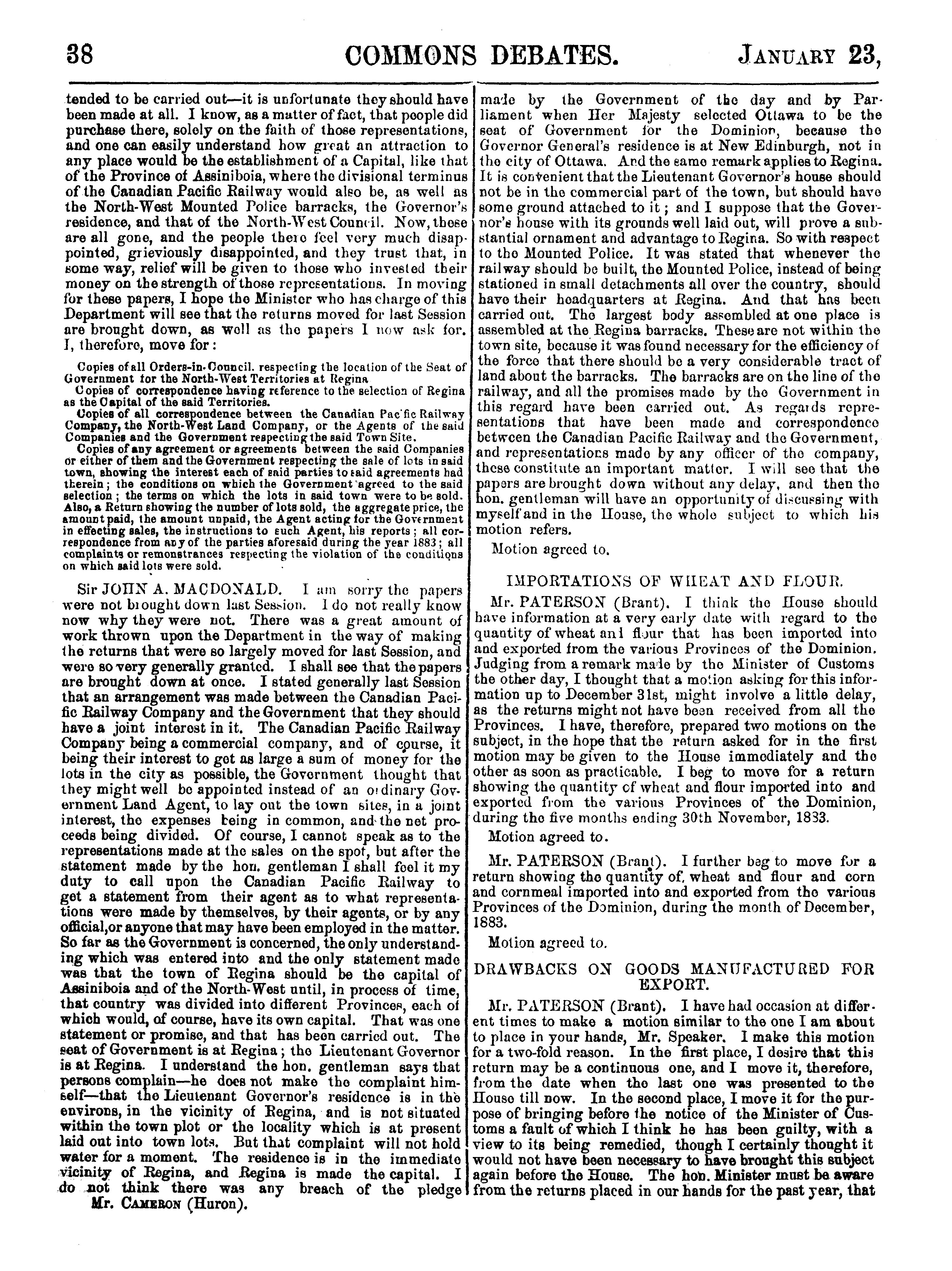 Official report of the debates of the House of Commons of the Dominion of Canada : second session, fifth Parliament ... comprising the period from the seventeenth day of January to the eleventh day of March, 1884 : 1884 (pt. 1)