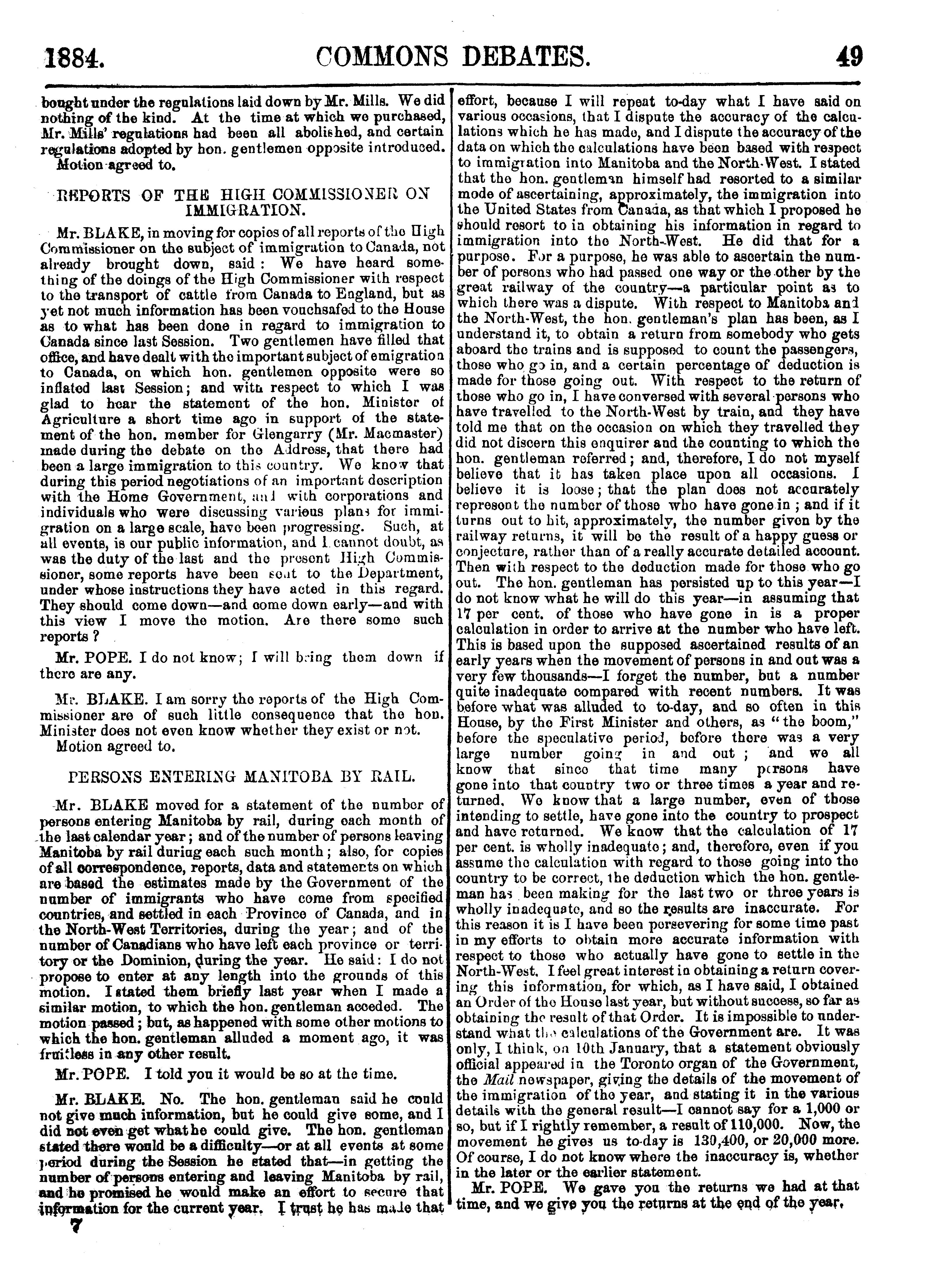 Official report of the debates of the House of Commons of the Dominion of Canada : second session, fifth Parliament ... comprising the period from the seventeenth day of January to the eleventh day of March, 1884 : 1884 (pt. 1)