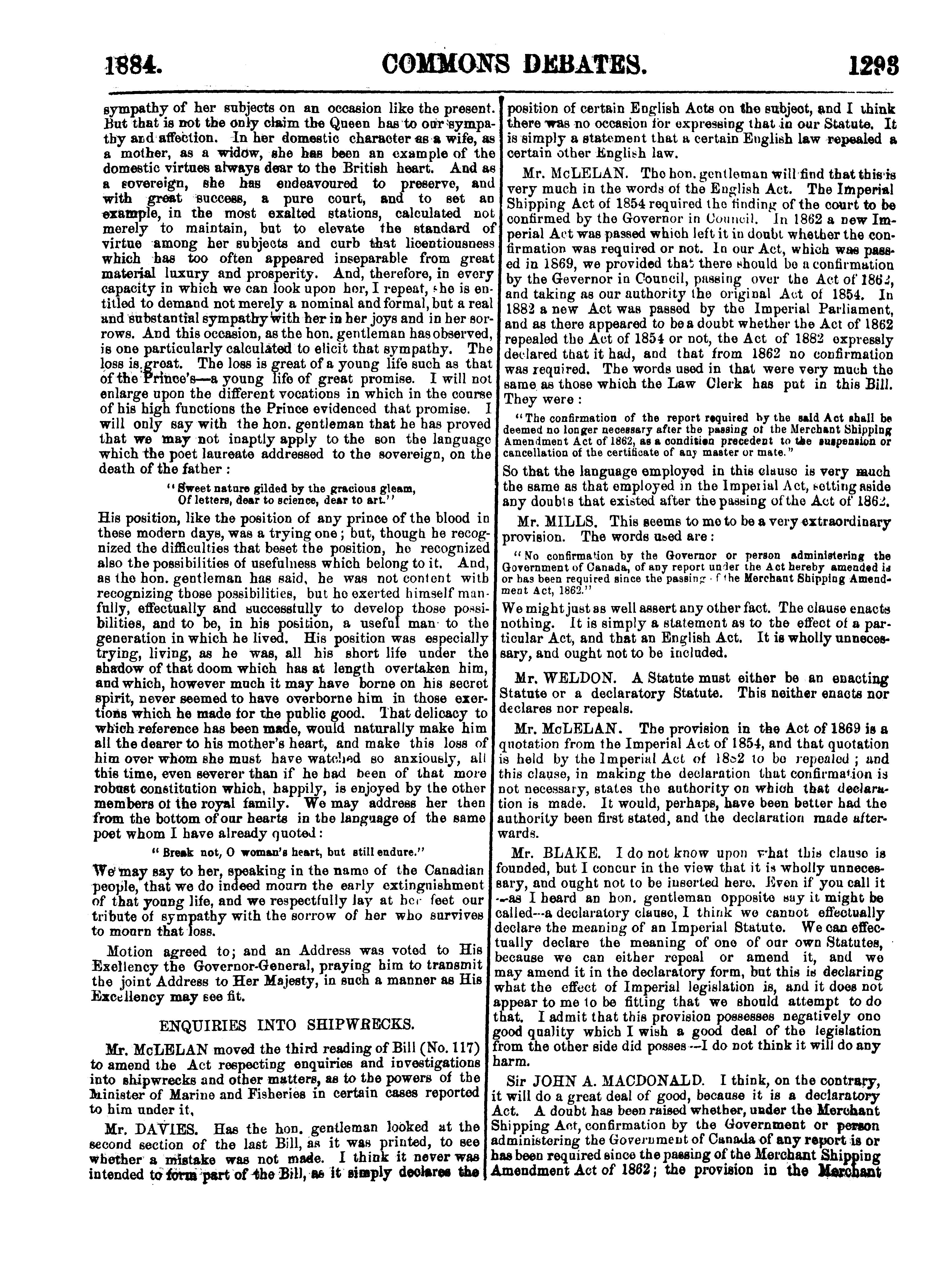 Official report of the debates of the House of Commons of the Dominion of Canada : second session ... comprising the period from the twelfth day of March to the nineteenth day of April, 1884 : 1884 (pt. 2)
