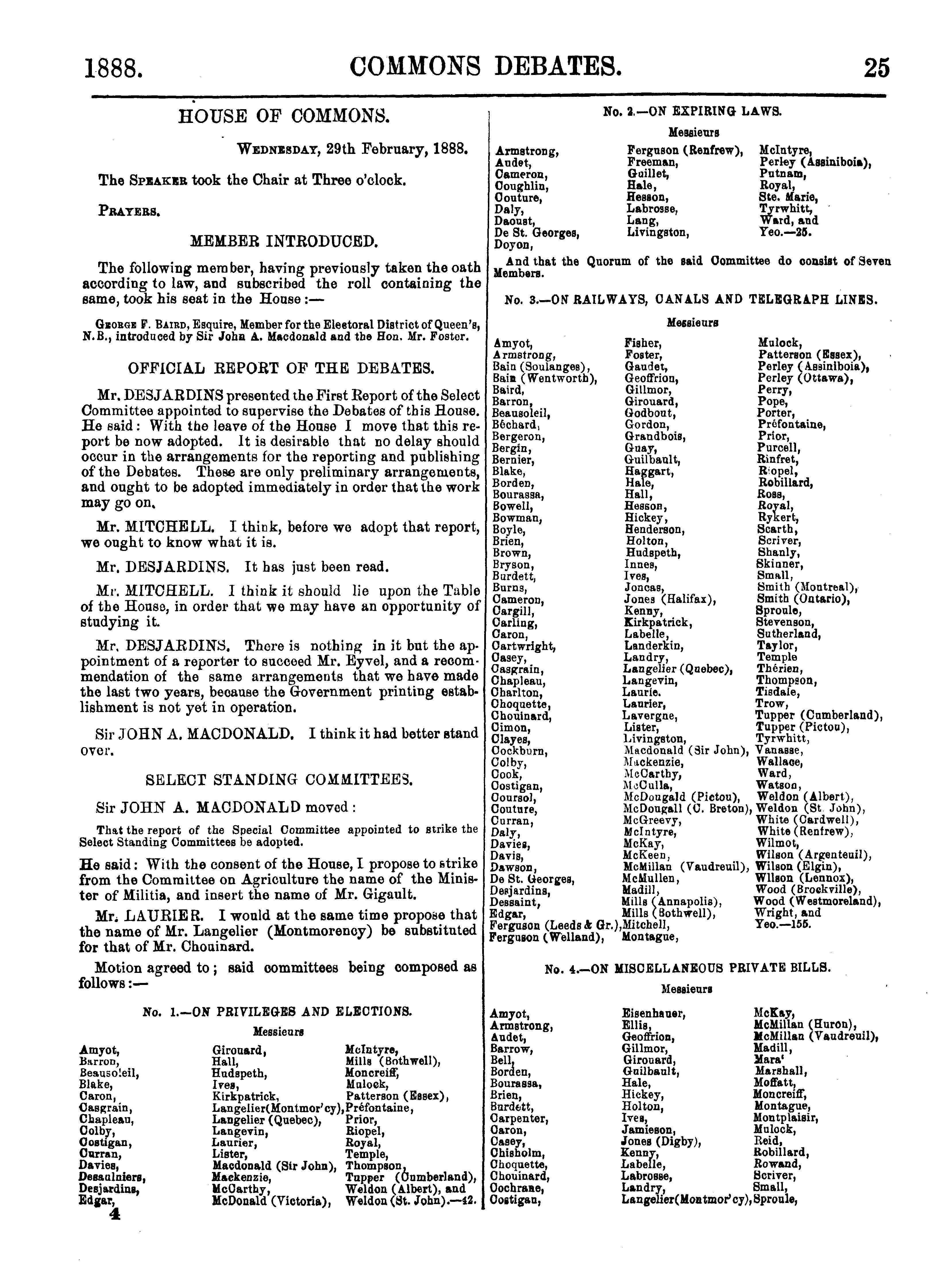 Official report of the debates of the House of Commons of the Dominion of Canada : second session, sixth Parliament ... comprising the period from the twenty-third day of February to the thirteenth day of April, 1888 : 1888 (pt. 1)