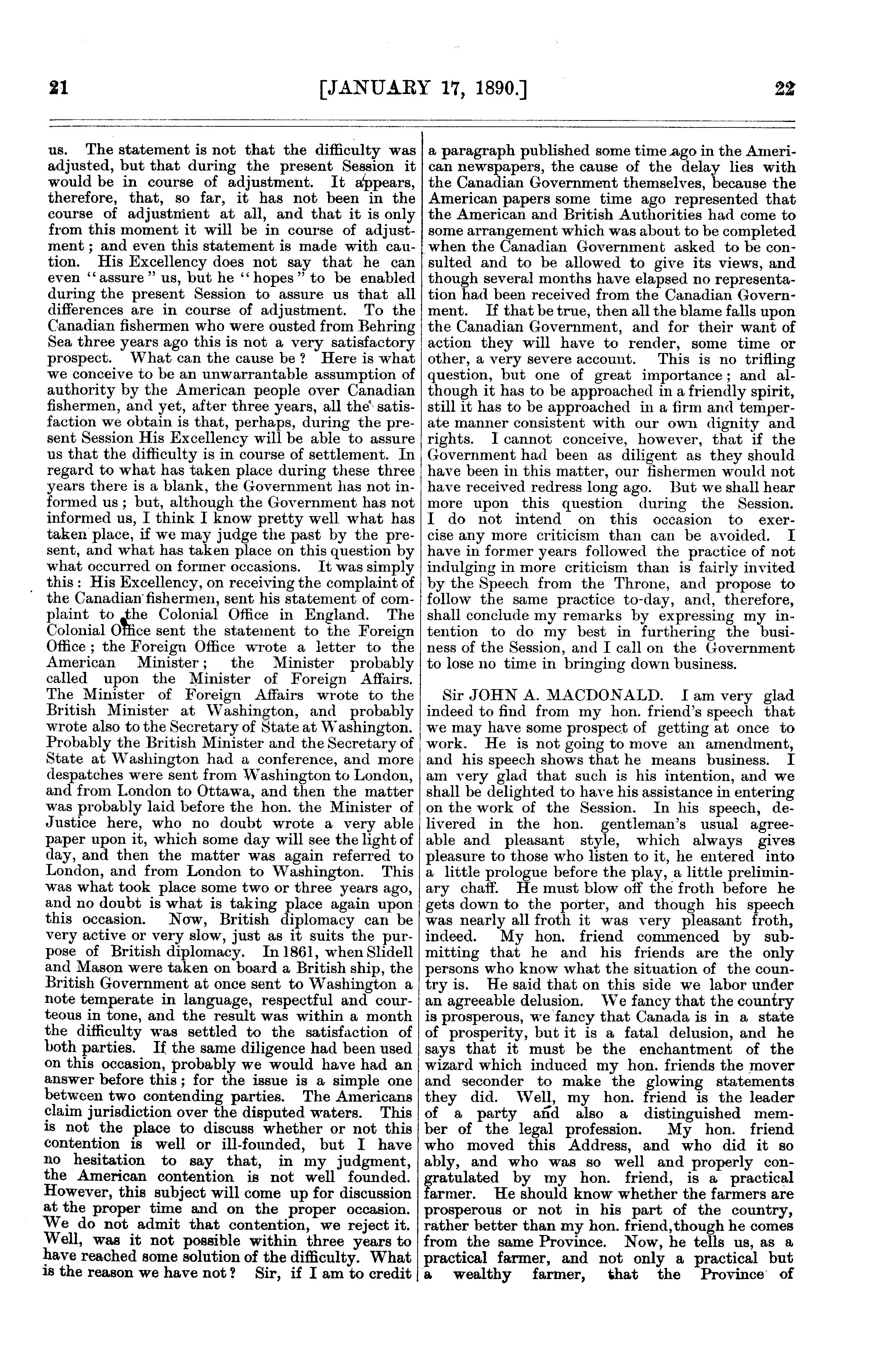 Official report of the debates of the House of Commons of the Dominion of Canada : fourth session, sixth Parliament ... comprising the period from the sixteenth day of January to the twenty-sixth day of March, inclusive, 1890 : 1890 (pt. 1)