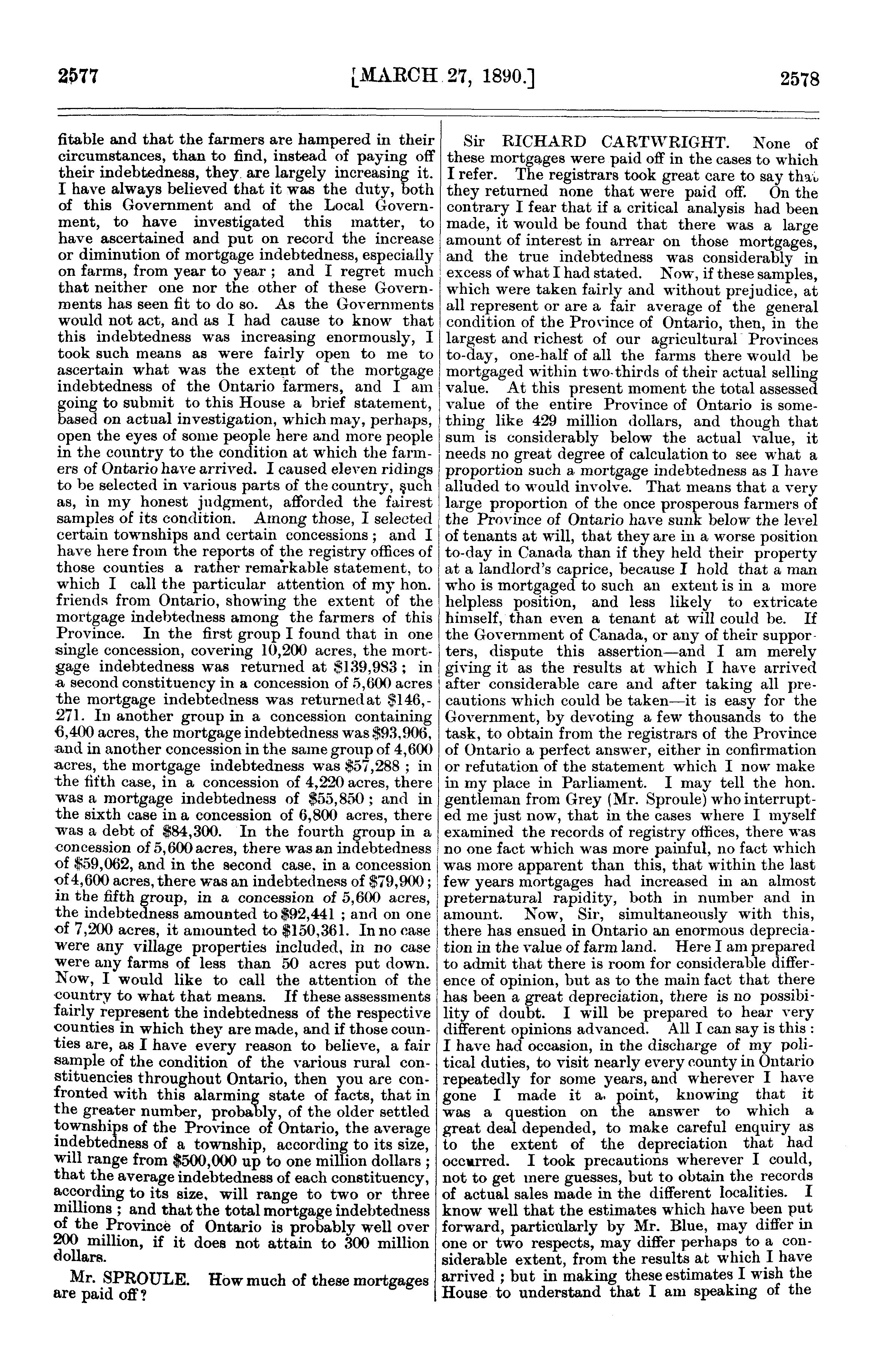 Official report of the debates of the House of Commons of the Dominion of Canada : Official report of the debates of the House of Commons of the Dominion of Canada : fourth session, sixth Parliament ... commprising the period from the twenty-seventh day of March to the sixteenth day of May, inclusive, 1890 : 1890 (pt. 2)