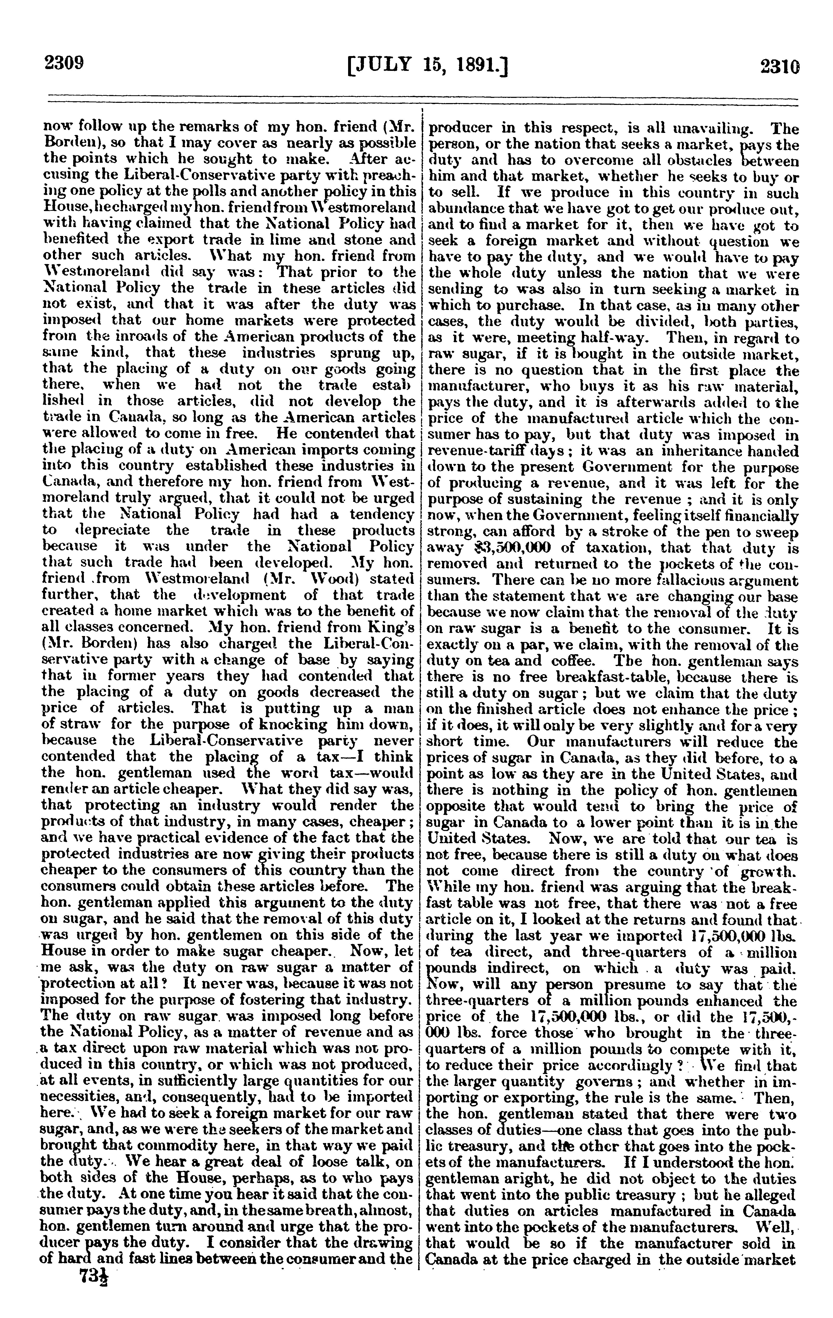 Official report of the debates of the House of Commons of the Dominion of Canada : first session, seventh Parliament ... comprising the period from the tenth day of July to the twentieth day of August, inclusive : 1891 (pt. 2)