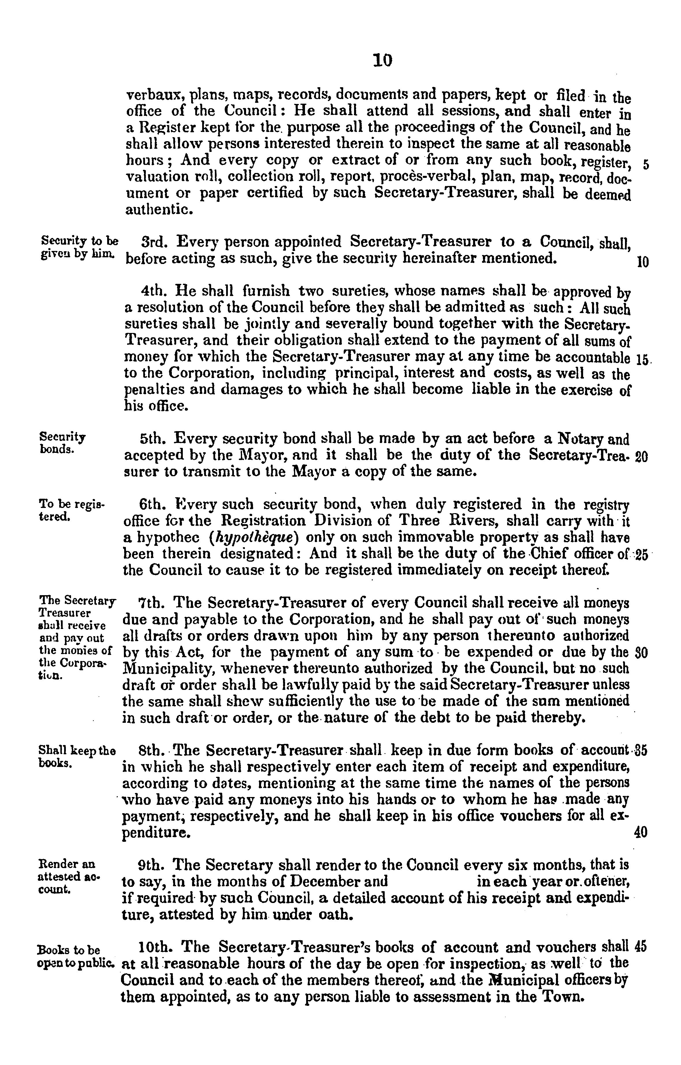 Bill : an act to make more ample provision for the incorporation of the town of Three Rivers.