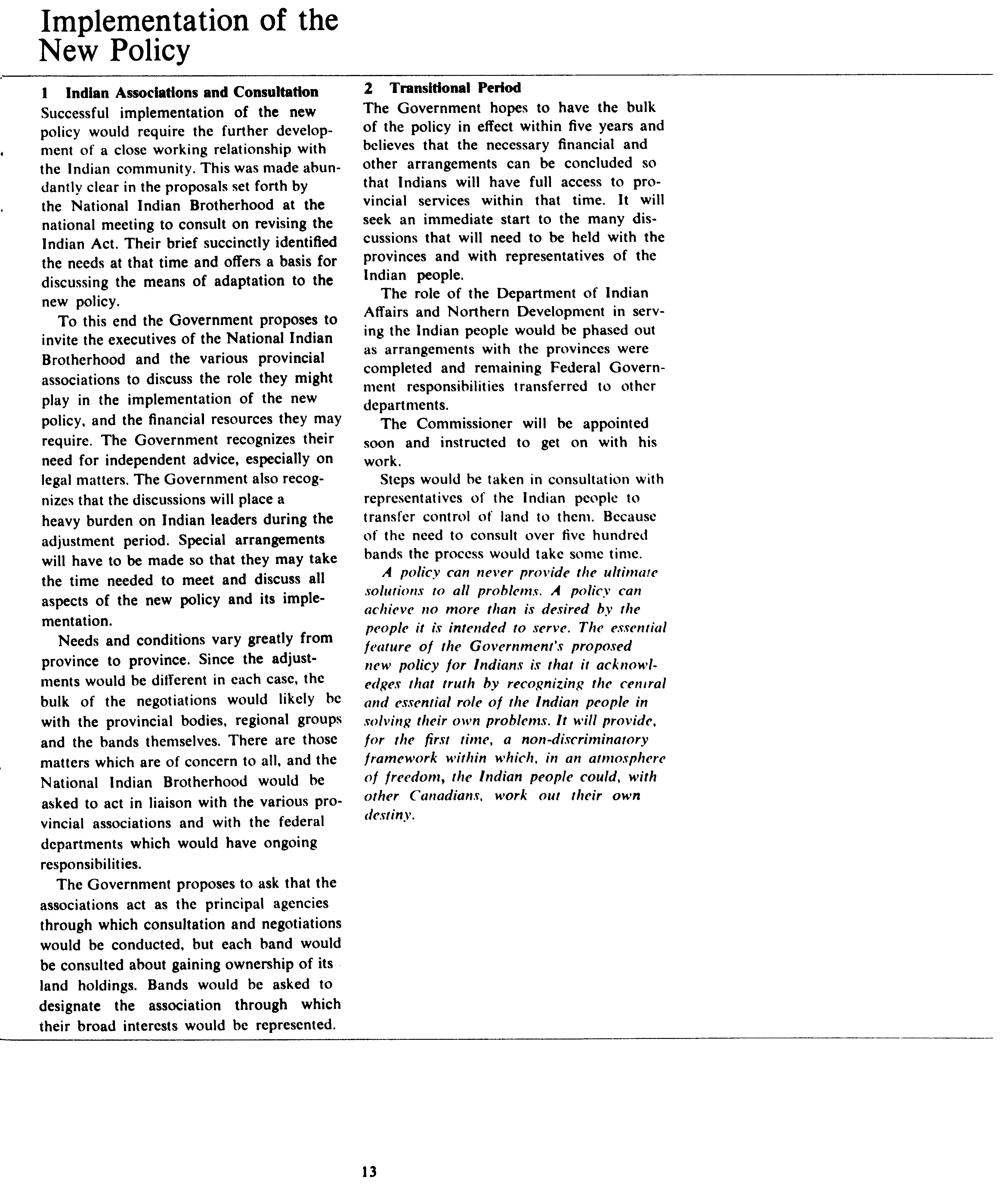 Statement of the Government of Canada on Indian policy, 1969 : presented to the first session of the twenty-eighth Parliament by the Honourable Jean Chrétien, Minister of Indian Affairs and Northern Development. - Adresse bibliographique