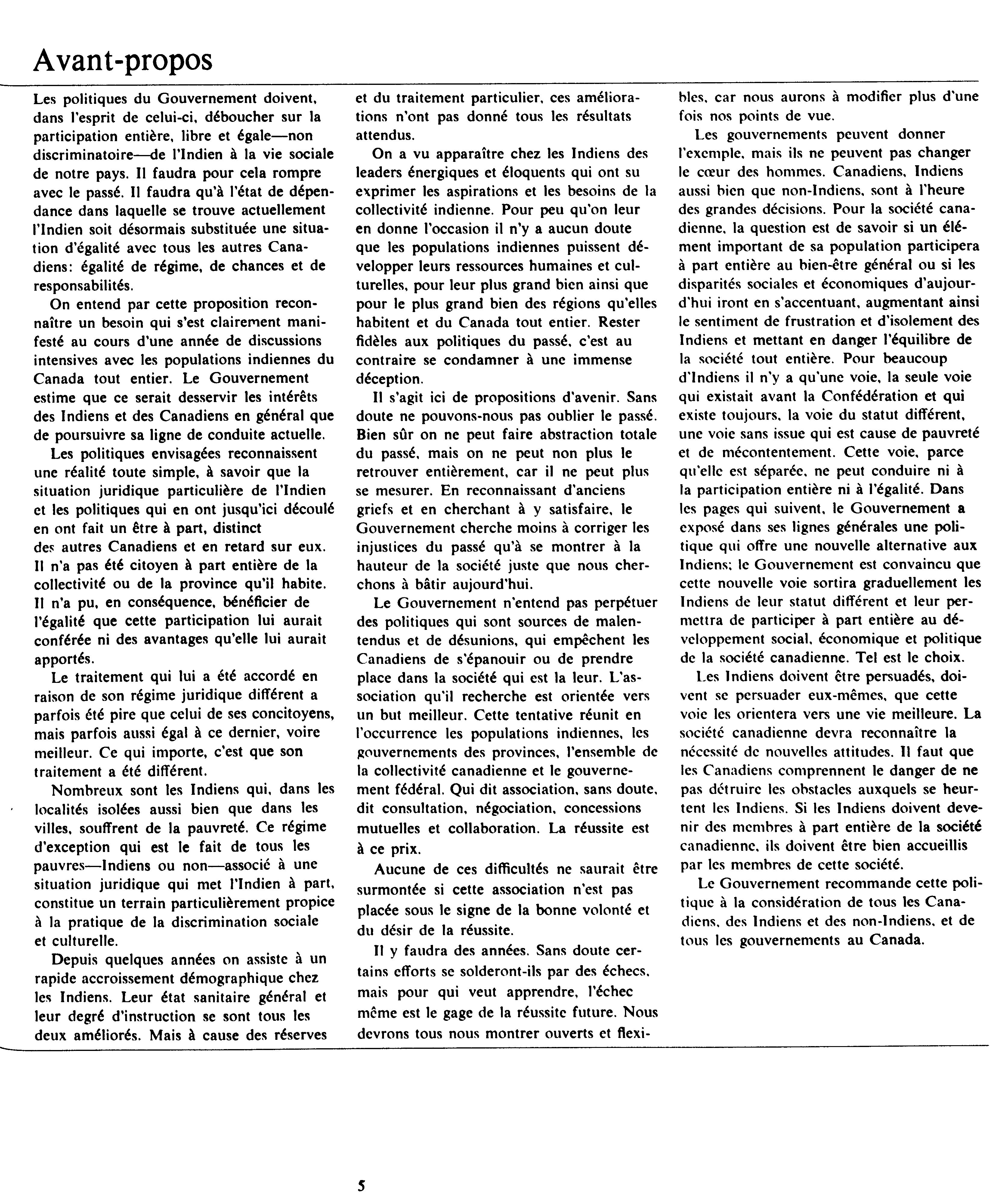 Statement of the Government of Canada on Indian policy, 1969 : presented to the first session of the twenty-eighth Parliament by the Honourable Jean Chrétien, Minister of Indian Affairs and Northern Development. - Adresse bibliographique
