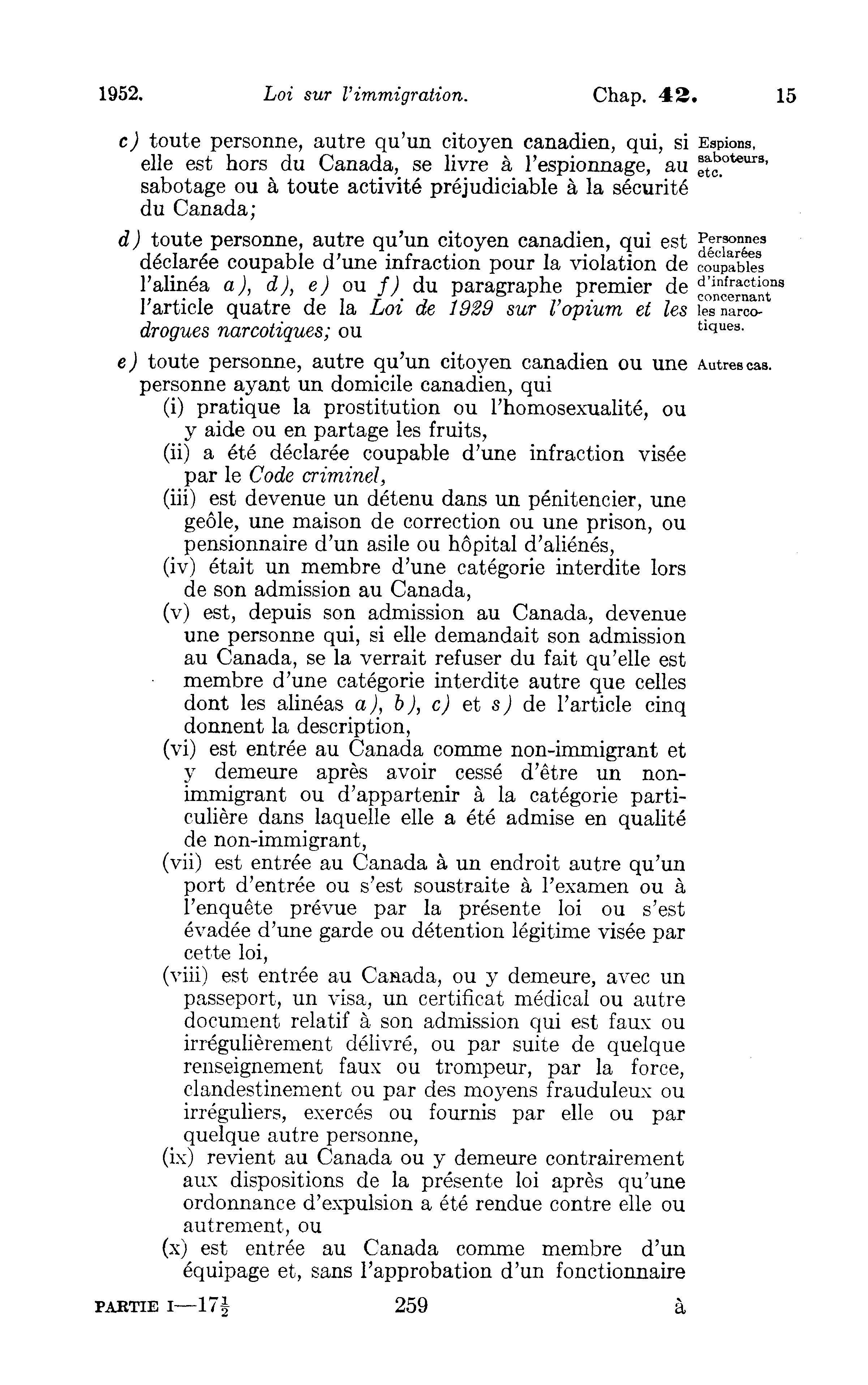 Extrait de: Lois du Parlement du Canada : adoptées pendant la session tenue la première année du règne de Sa Majesté la reine Elizabeth II. Partie 1. Lois publiques générales. Ottawa : E. Cloutier, 1952.