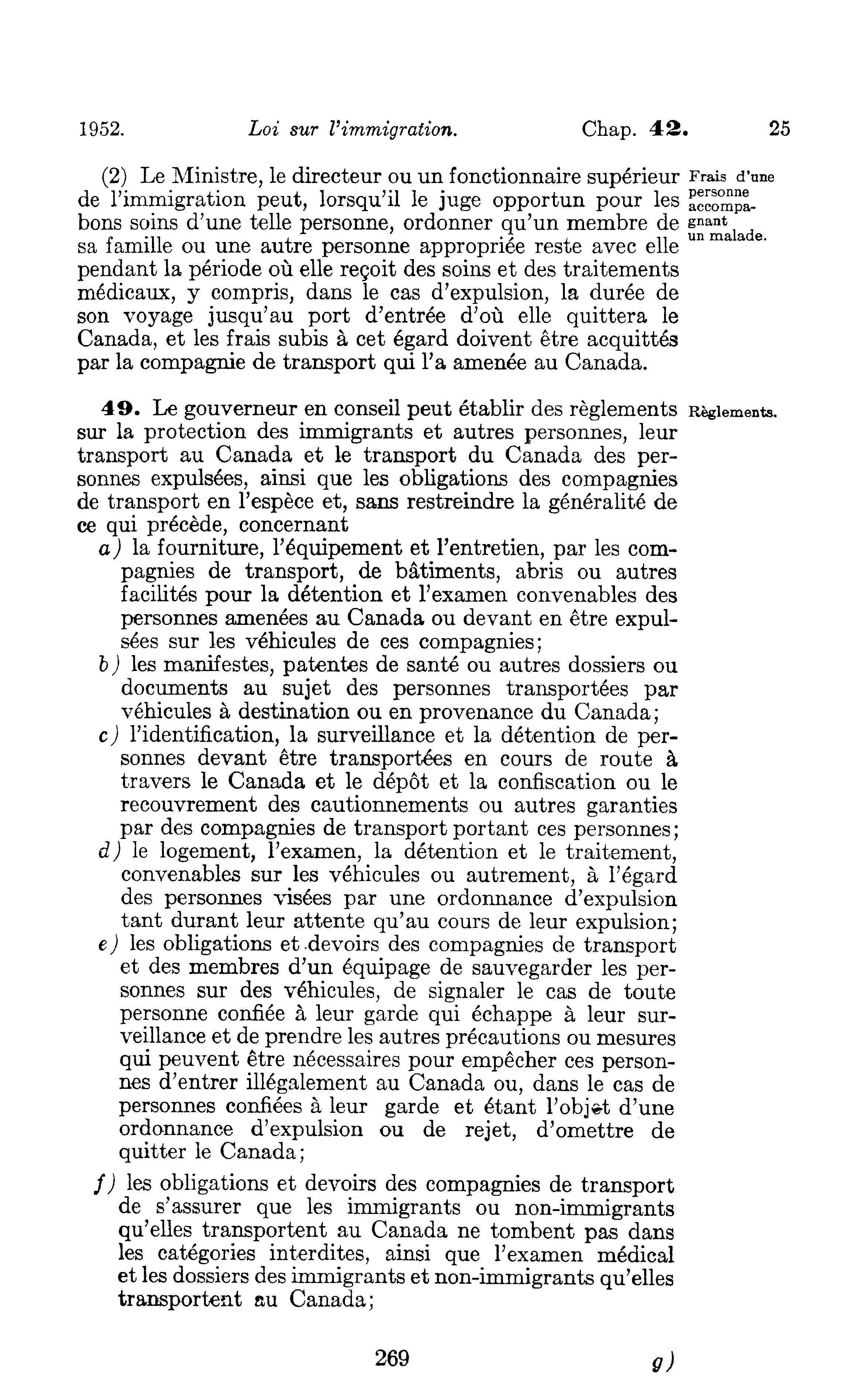 Extrait de: Lois du Parlement du Canada : adoptées pendant la session tenue la première année du règne de Sa Majesté la reine Elizabeth II. Partie 1. Lois publiques générales. Ottawa : E. Cloutier, 1952.