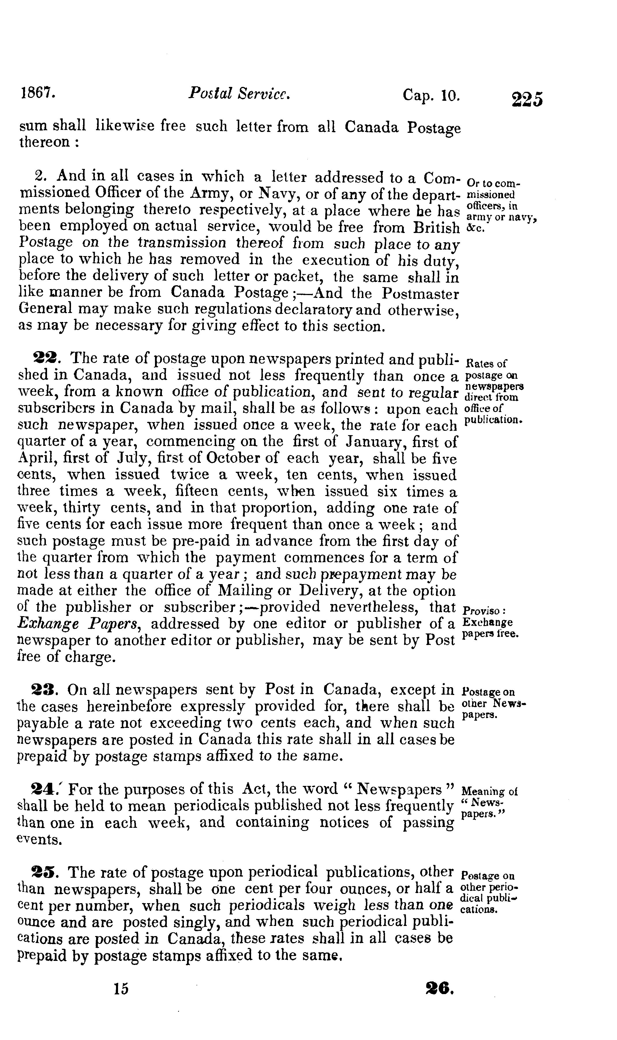 Statutes of Canada ... being the first session of the first Parliament of Canada, begun and holden at Ottawa, on the sixth of November, in the year of Our Lord one thousand eight hundred and sixty-seven : 1867 (pt. 1) (Acts 1-21)