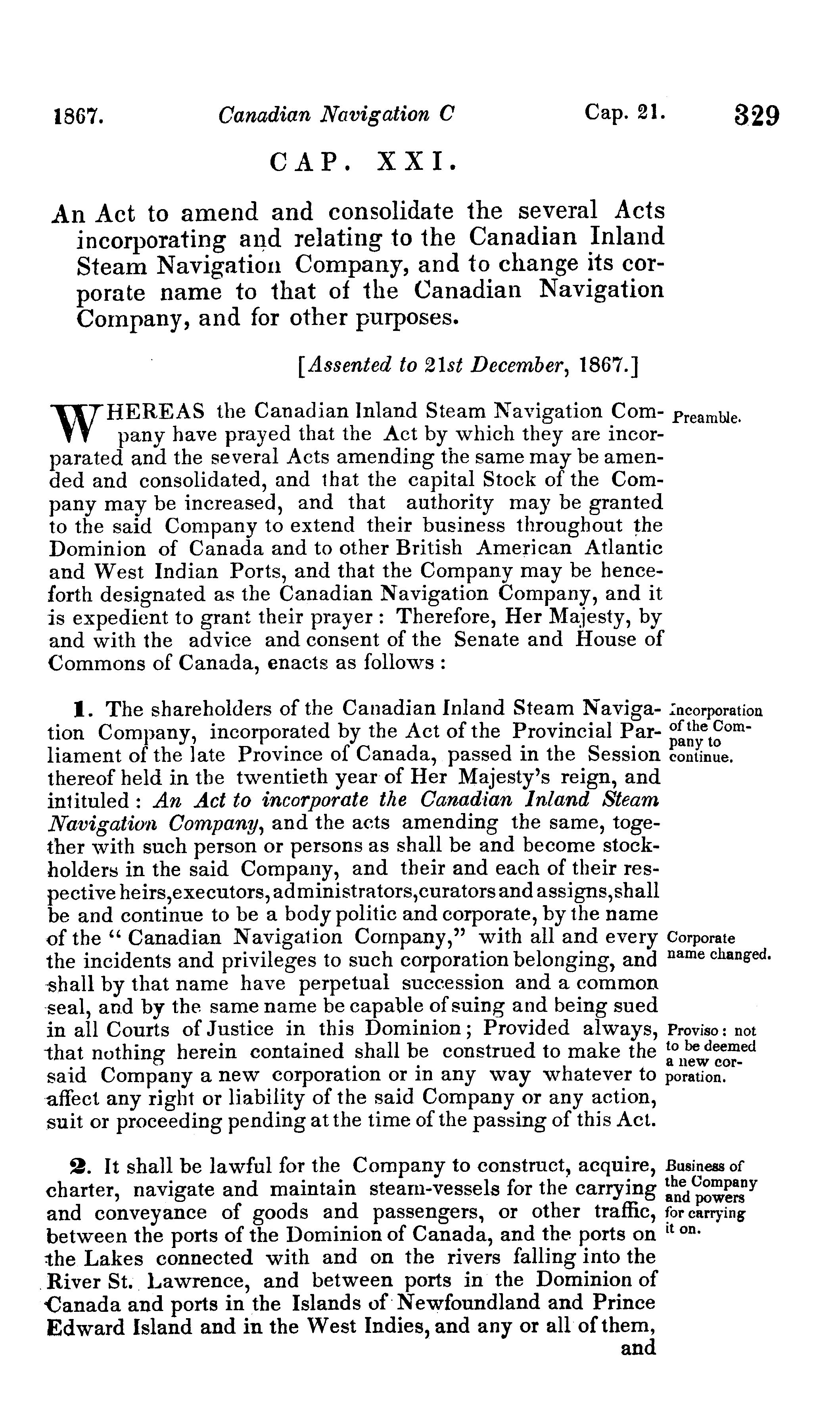 Statutes of Canada ... being the first session of the first Parliament of Canada, begun and holden at Ottawa, on the sixth of November, in the year of Our Lord one thousand eight hundred and sixty-seven : 1867 (pt. 1) (Acts 1-21)