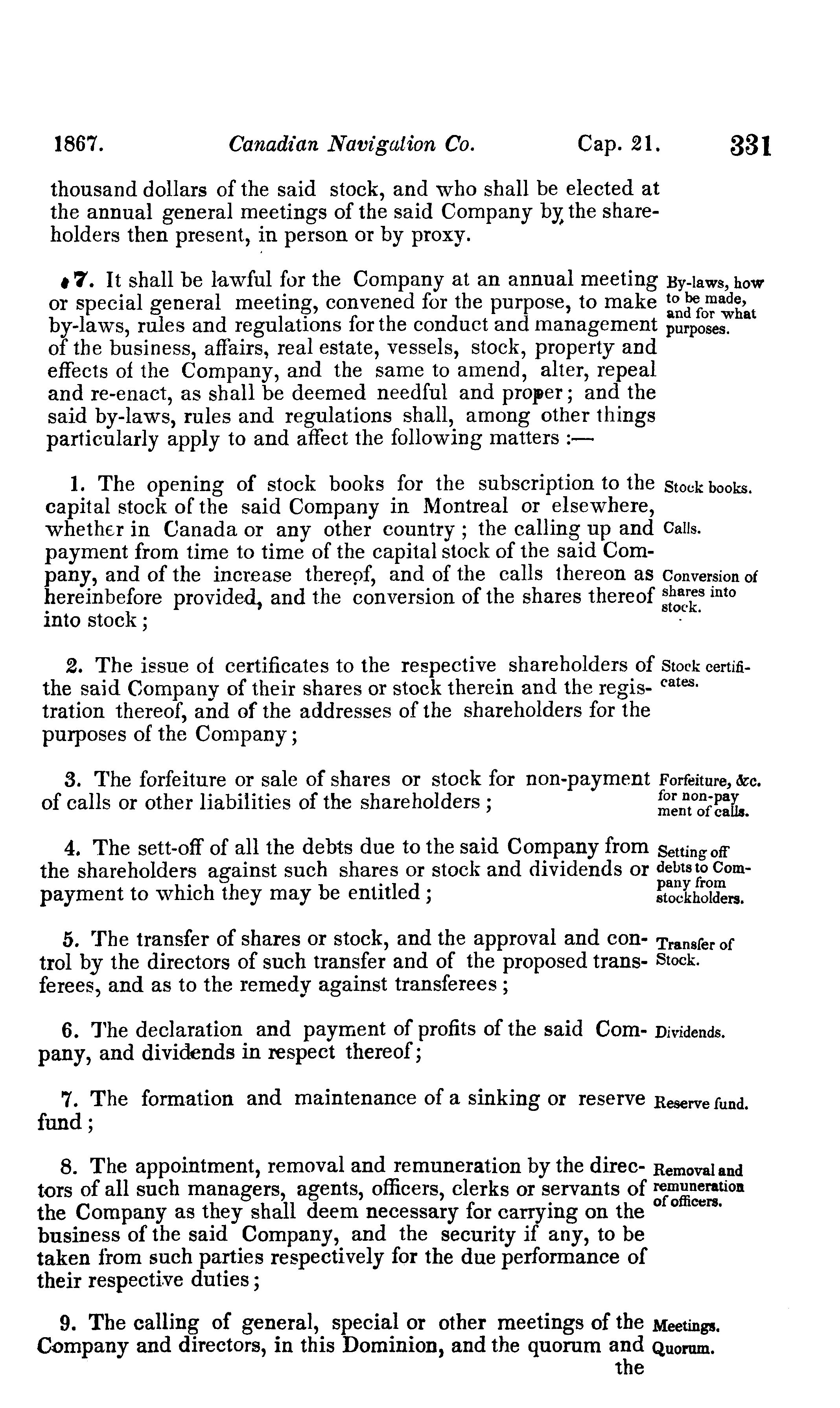 Statutes of Canada ... being the first session of the first Parliament of Canada, begun and holden at Ottawa, on the sixth of November, in the year of Our Lord one thousand eight hundred and sixty-seven : 1867 (pt. 1) (Acts 1-21)