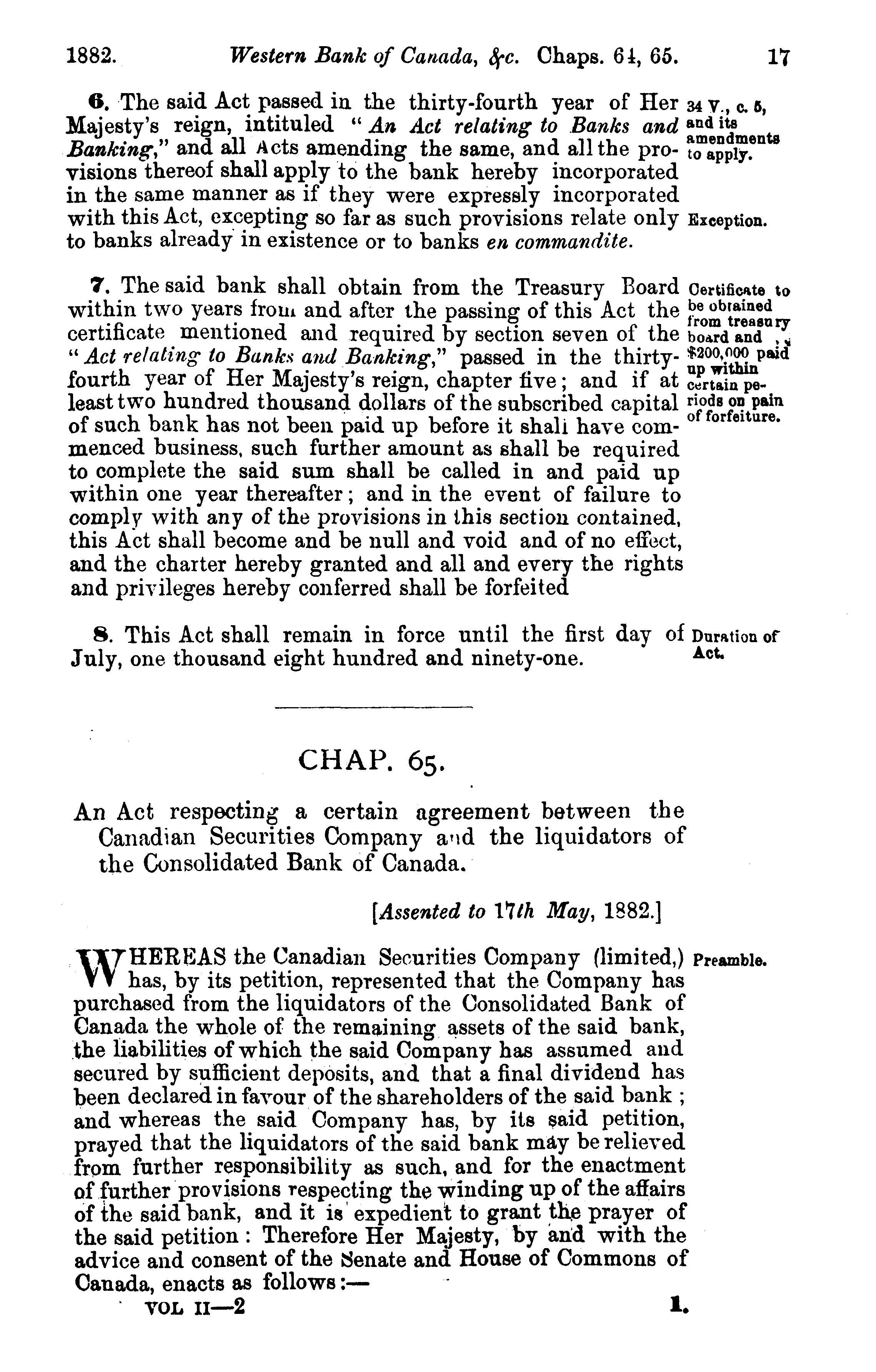 Acts of the Parliament of the Dominion of Canada ... fourth session of the fourth Parliament, begun and holden at Ottawa, on the ninth day of February, and closed by prorogation on the seventeenth day of May, 1882 : local and private acts : 1882 (pt. 2) (Acts 56-127)