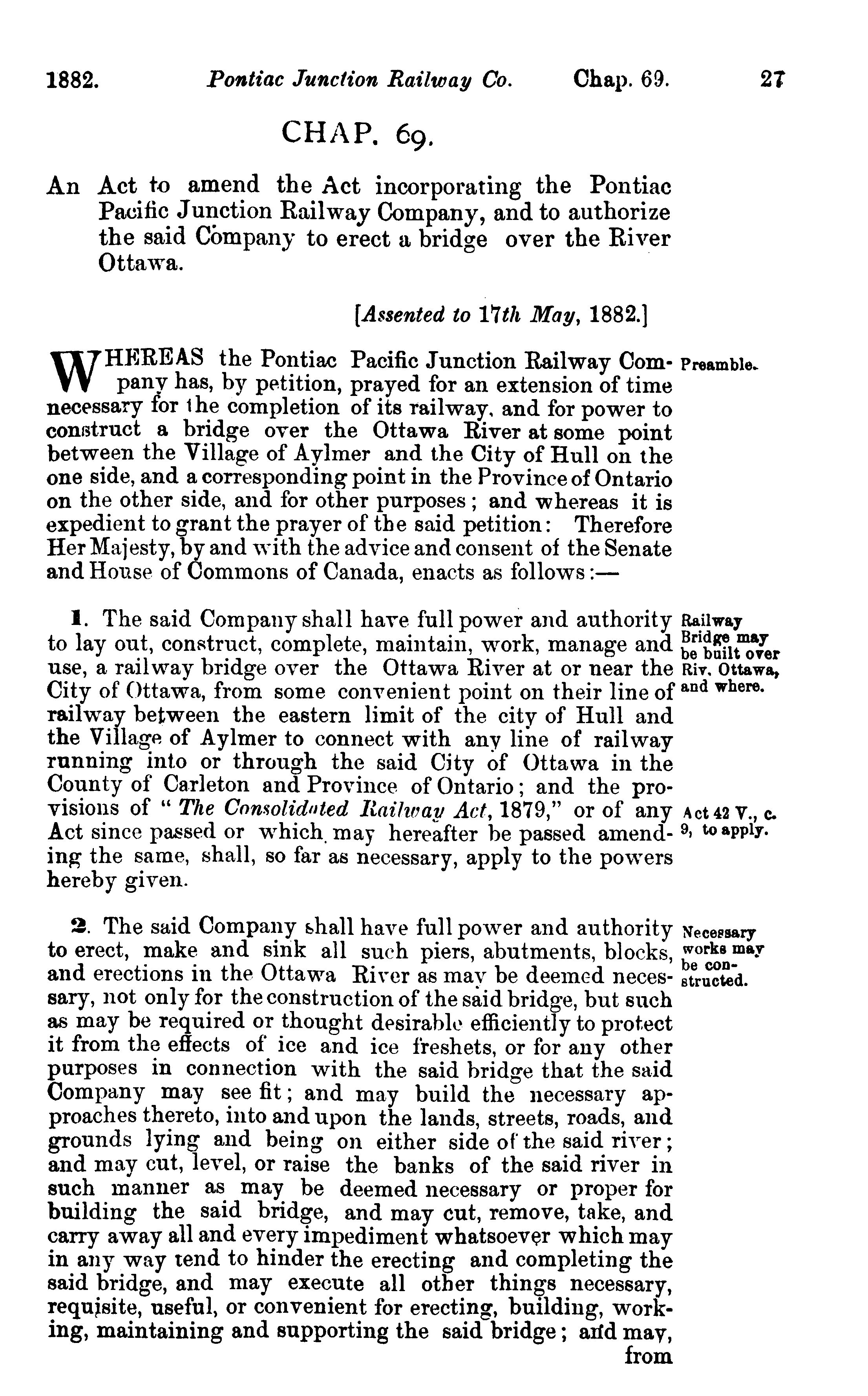 Acts of the Parliament of the Dominion of Canada ... fourth session of the fourth Parliament, begun and holden at Ottawa, on the ninth day of February, and closed by prorogation on the seventeenth day of May, 1882 : local and private acts : 1882 (pt. 2) (Acts 56-127)