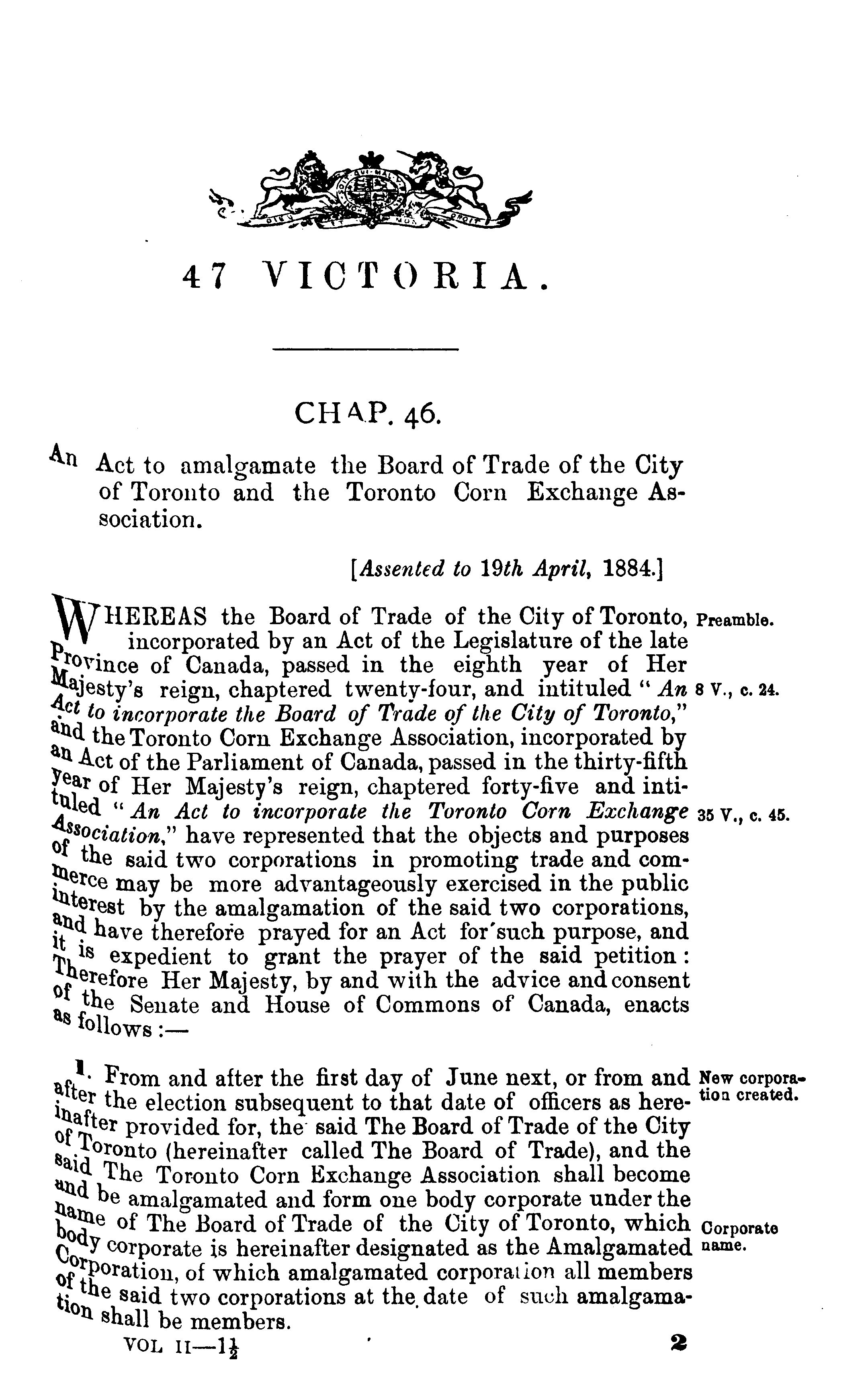 Acts of the Parliament of the Dominion of Canada ... second session of the fifth Parliament, begun and holden at Ottawa, on the seventeenth day of January and closed by prorogation on the nineteenth day of April, 1884 : local and private acts : 1884 (pt. 2) (Acts 46-107)