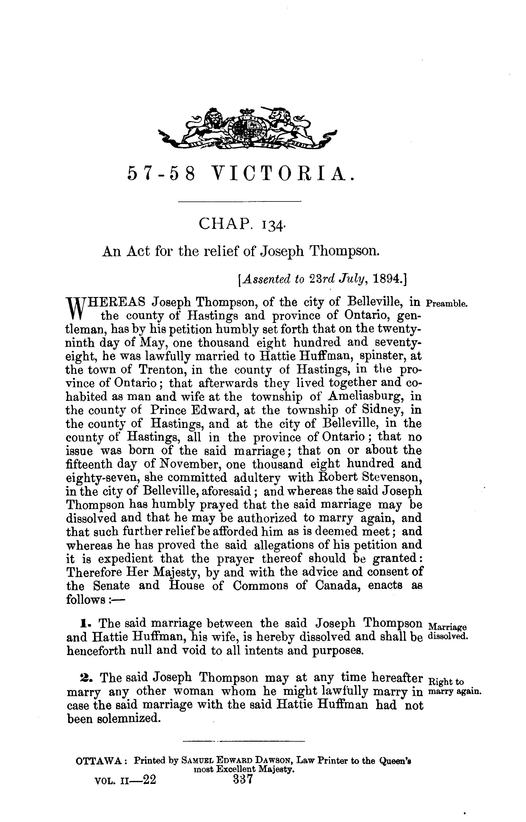 Acts of the Parliament of the Dominion of Canada ... fourth session of the seventh Parliament, begun and holden at Ottawa, on the fifteenth day of March, and closed by prorogation on the twenty-third day of July, 1894 : local and private acts : 1894 (pt. 2) (Acts 61-134)