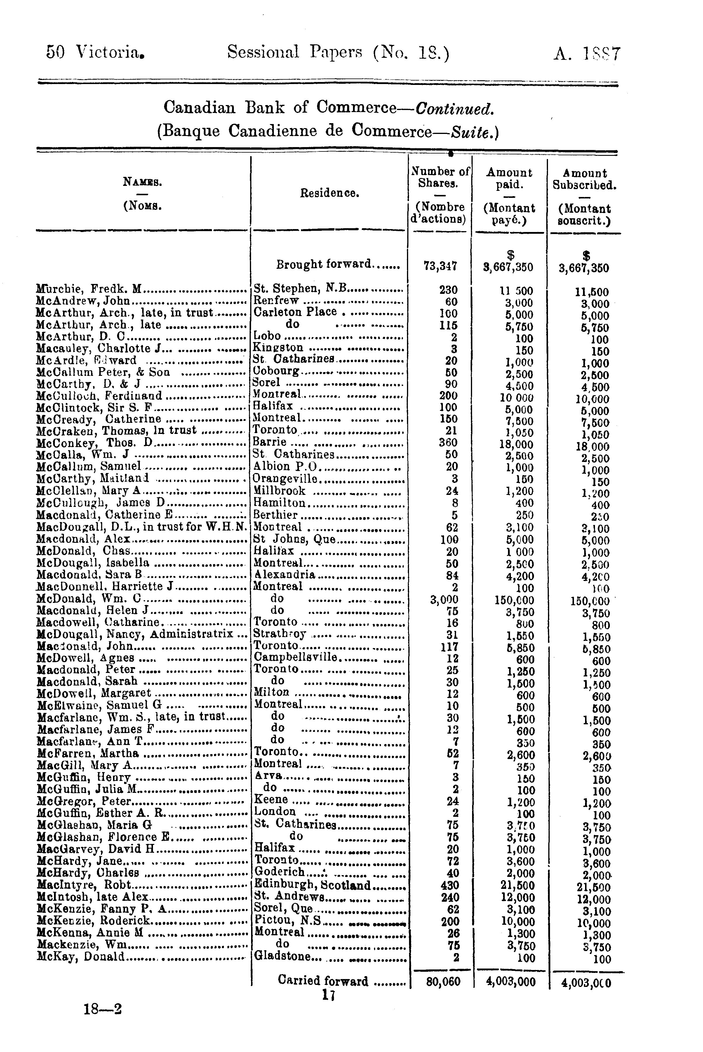 Sessional papers of the Dominion of Canada : volume 16, first session of the sixth Parliament, session 1887 : 1887