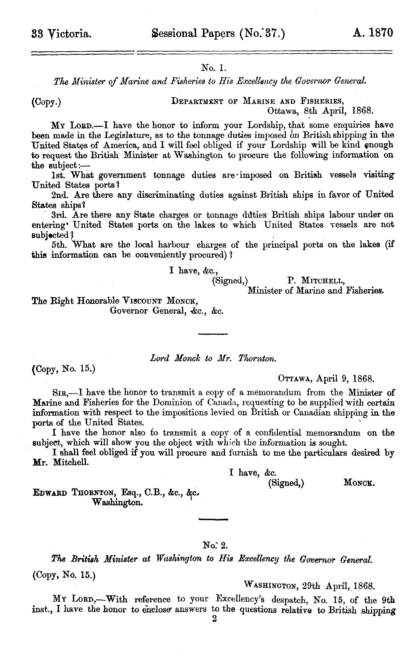 Sessional papers of the Dominion of Canada : volume VI, third session of the first Parliament, session 1870 : 1870